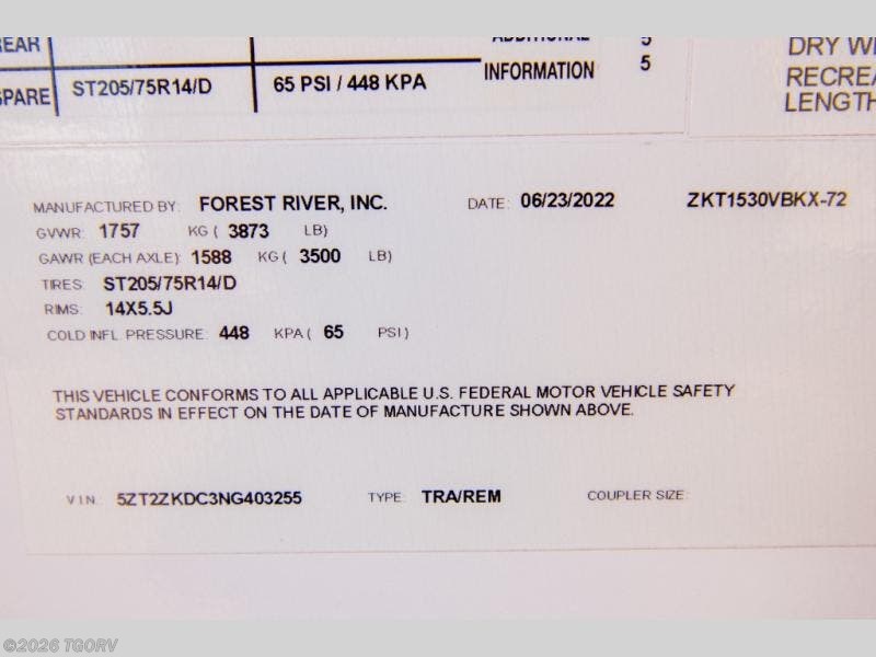Request More Info on this 2022 Forest River Ozark 1530VBKX Offered for sale by TGORV