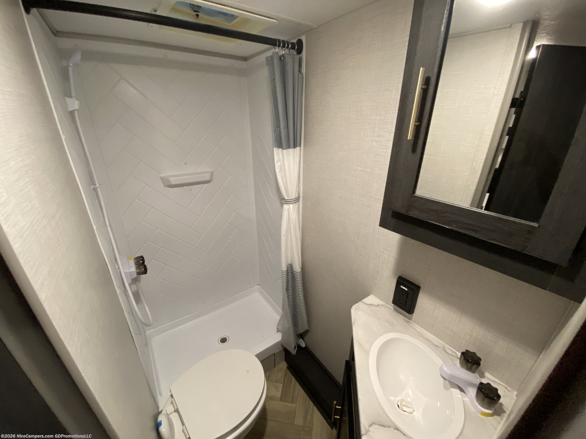 Medicine Cabinet, Queen Bed, Roof Vents, Shower, Toilet