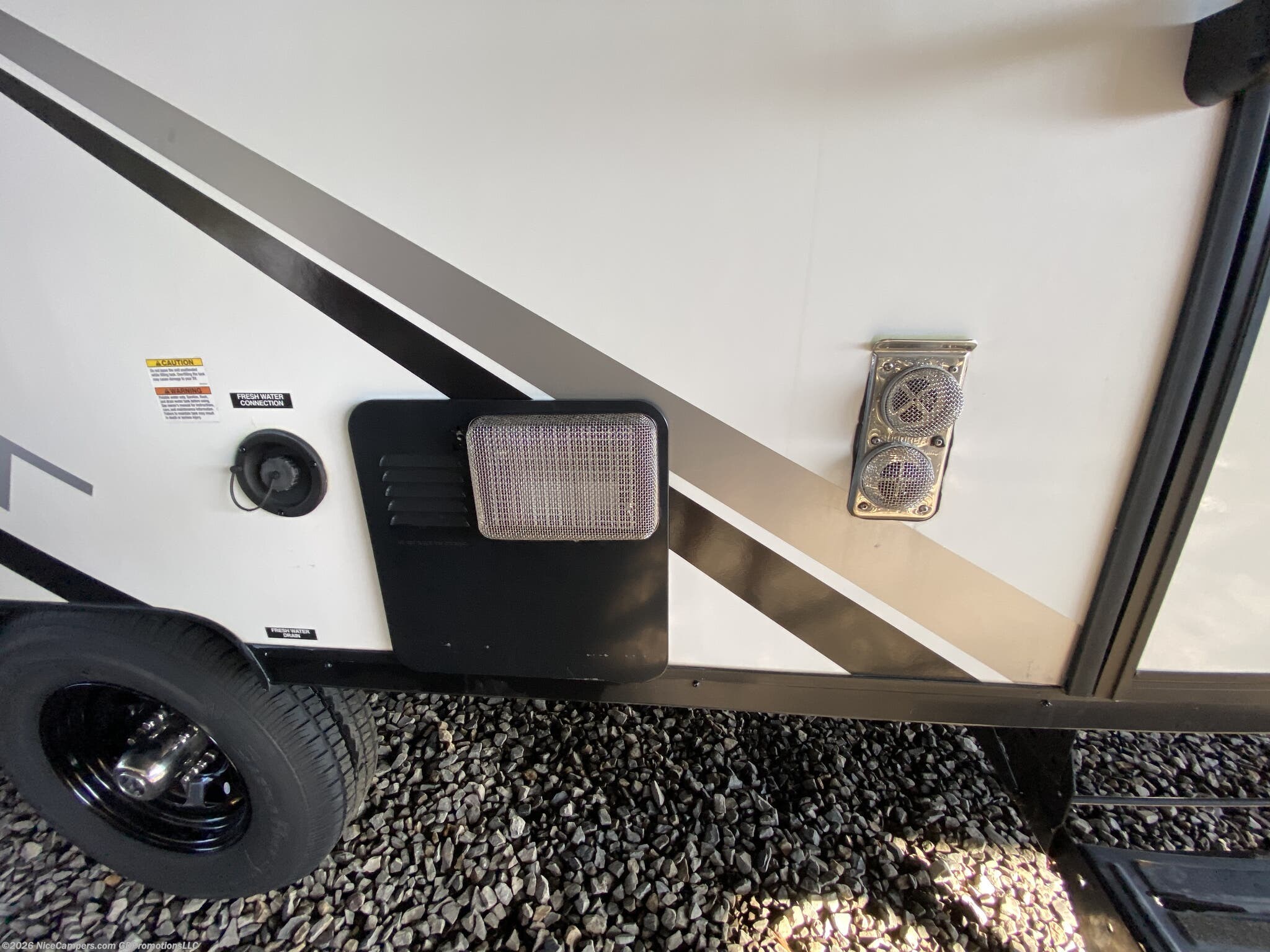 Awning, External Shower, Leveling Jacks, Outside Kitchen, Skylight, Slideout, Spare Tire Kit -