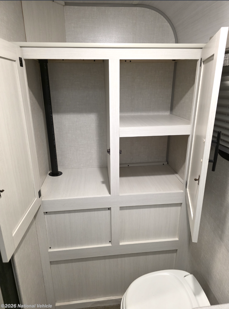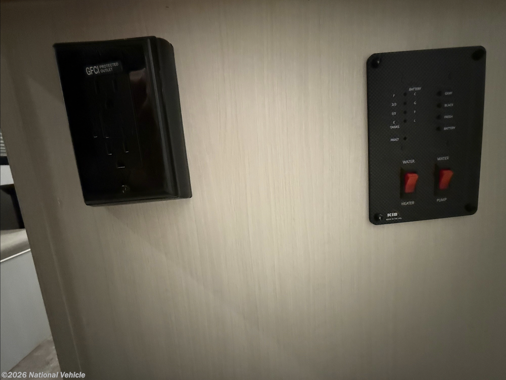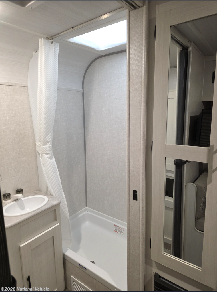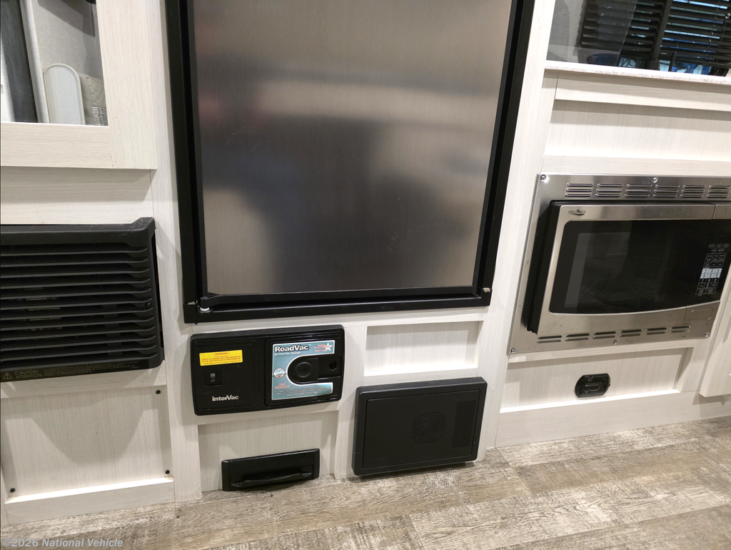 The kitchen is both stylish and functional, featuring a convection microwave and ample storage, while the auxiliary built-in vacuum makes quick cleanups effortless. Comfort extends outdoors as well, with an exterior griddle ideal for open-air cooking and an outdoor shower for added convenience after beach days or trail adventures.