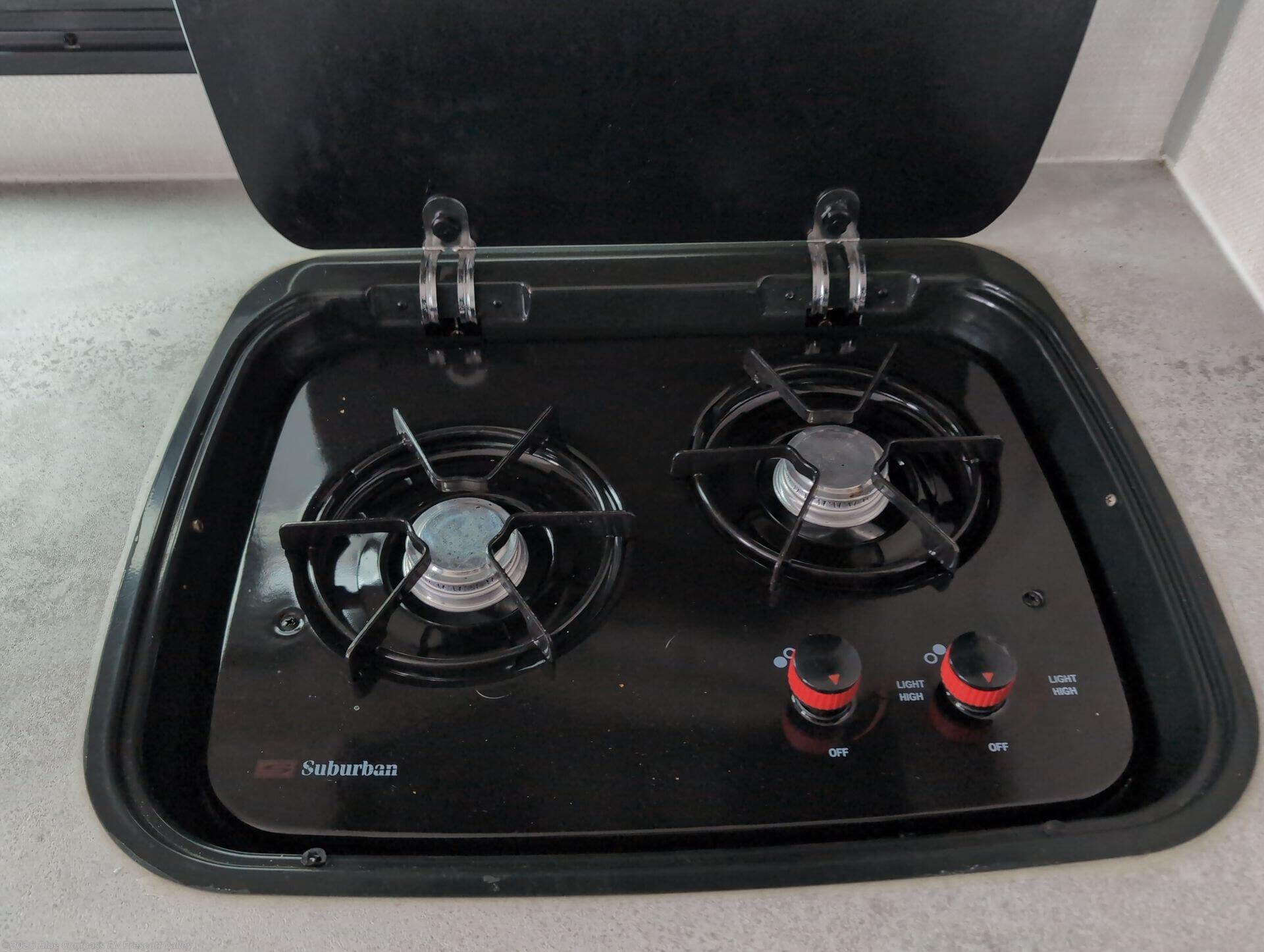 This is the perfect travel trailer for a couple or a small family, so pack your bags and get ready for an adventure in this R-Pod! After you've set up camp and had a look around the campgrounds, you can prepare lunch on the two-burner cooktop in the rear kitchen. There is a convenient three-way refrigerator and a pantry to store your favorite snacks and perishables, plus overhead compartments for your belongings. This model also includes a full bath so that you don't have to worry about using the camp's facilities, and the exterior pass-through storage allows you to bring along the fishing poles!