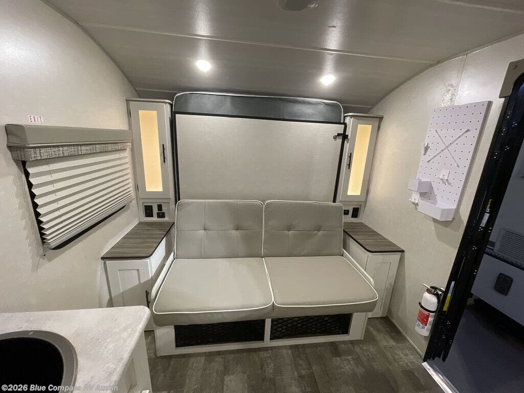 You're going to love all of the conveniences and versatility of this R-Pod travel trailer! The front Murphy bed can fold away to reveal a sofa which gives you a comfortable place to sit during the day and to sleep at night too. The rear full bath features everything you will need to get squeaky clean each morning, as well as a large wardrobe for you to store your linens. After you have whipped up your best meal with the two-burner cooktop or convection microwave, you can head to the 30" x 75" booth dinette and enjoy eating it there comfortably. There is plenty of storage space inside, but if you need more space, then you can use the exterior pass-through storage!