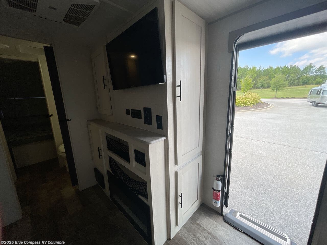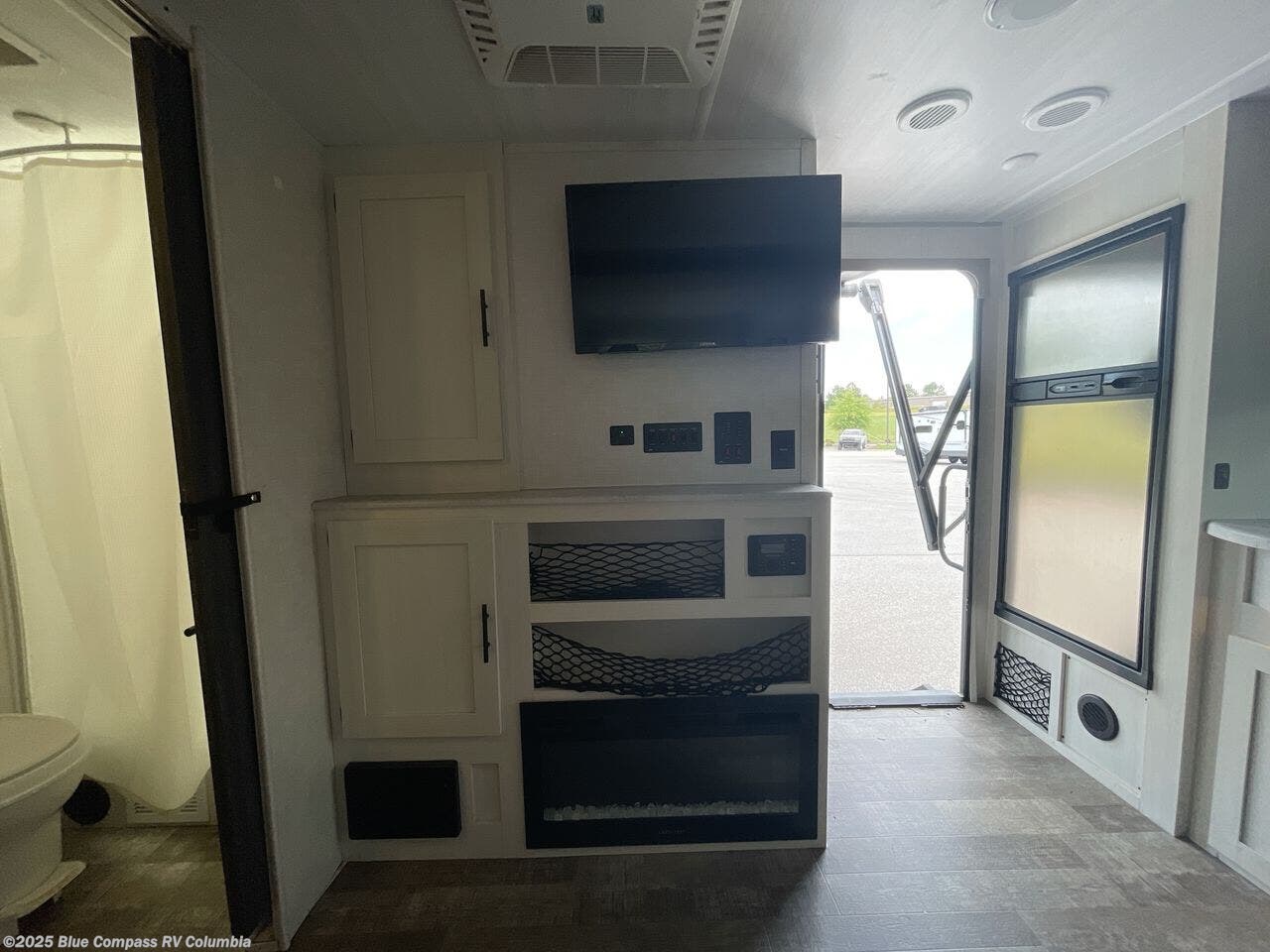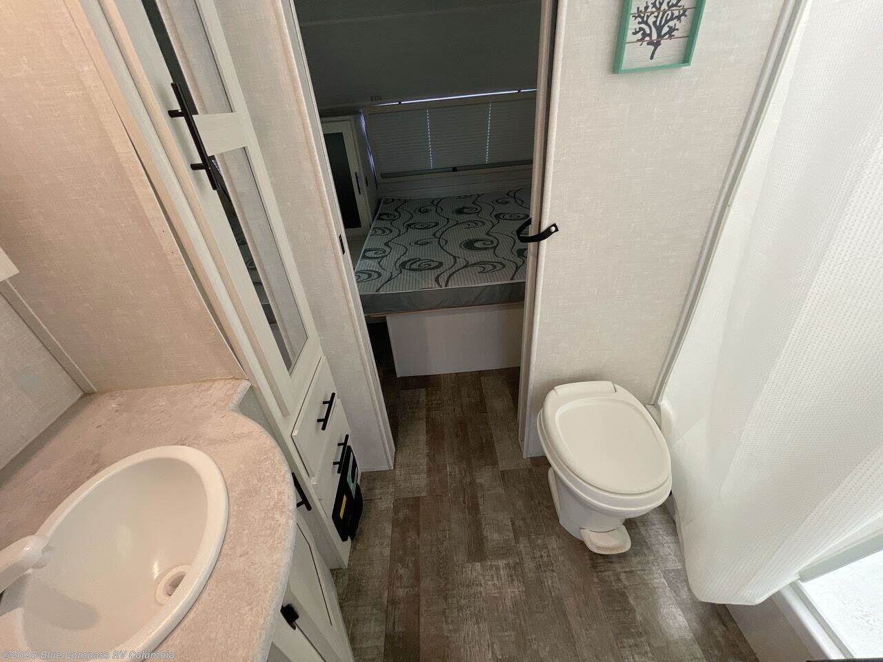 A private bedroom with a walk-around RV queen bed, a walk-through bathroom, and an outside kitchen are a few of the features that you are sure to want in your next RV! You can rest comfortably each night, plus all your clothing can be stored in the dual wardrobes to keep everything tidy. Everyone will stay clean with the full bathroom only steps away, and there is linen storage as well. The main living and kitchen area offers a slide out dinette that can also sleep one more camper. The rear kitchen provides everything you will need, plus the outside kitchen gives you more choices. Step inside to start planning your weekend trip!