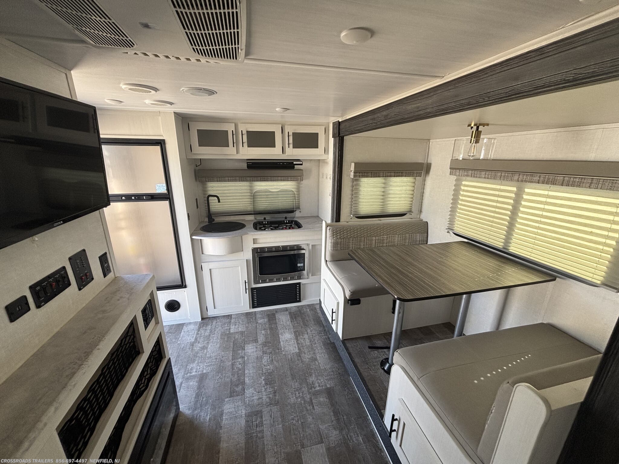 The Forest River R-Pod combines practical travel trailer design with modern comforts, making it an excellent choice for both weekend escapes and longer road trips. Its efficient layout, reliable appliances, and generous water capacities ensure you stay comfortable whether you’re parked at a campsite or cruising between destinations. The RP-202 floorplan emphasizes a sociable living area, a cozy queen bed, and a versatile booth dinette, ideal for dining or workspace. With essential safety detectors, a fireplace for cozy evenings, and a central vacuum system, this motorhome-like convenience comes in a compact, easy-to-tow package.