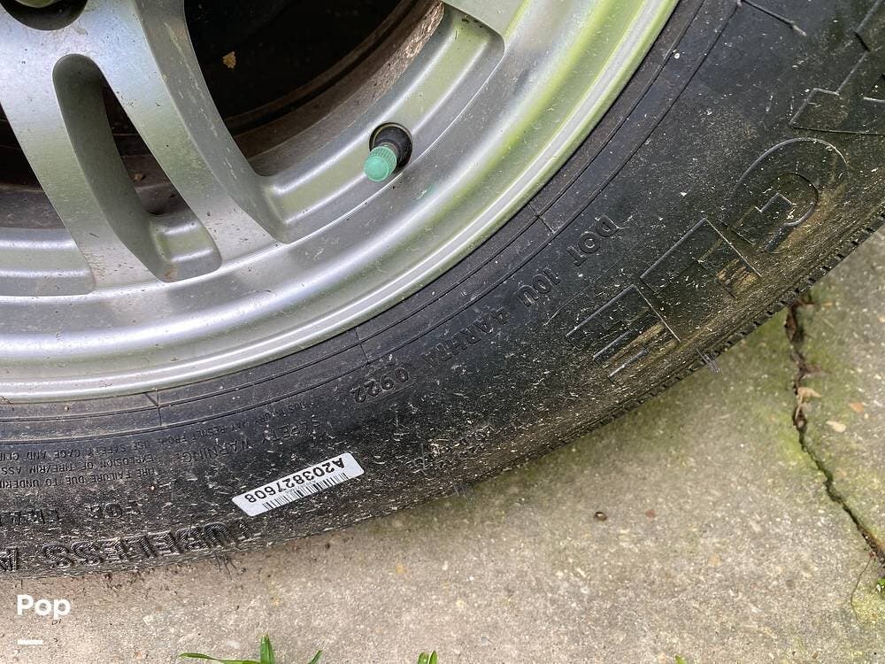 The exterior features pass-through storage bins, an undermounted spare tire, and a rear cargo rack for convenience.
