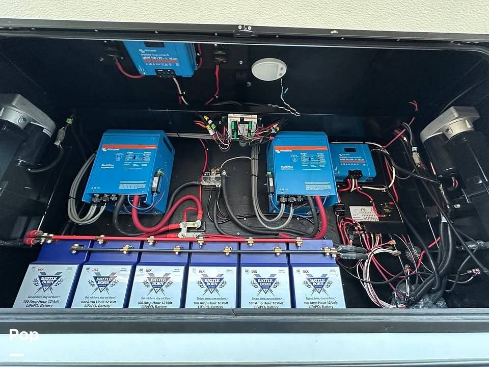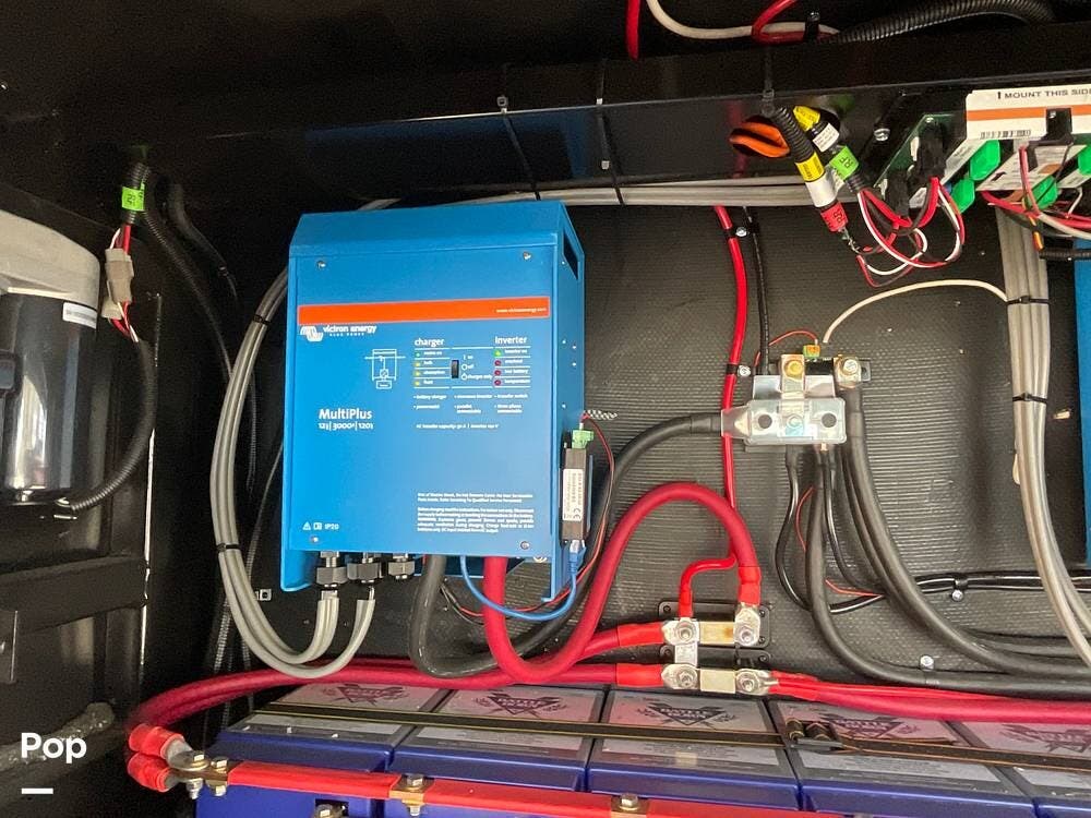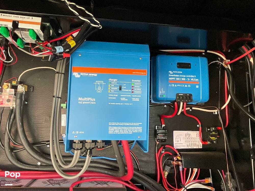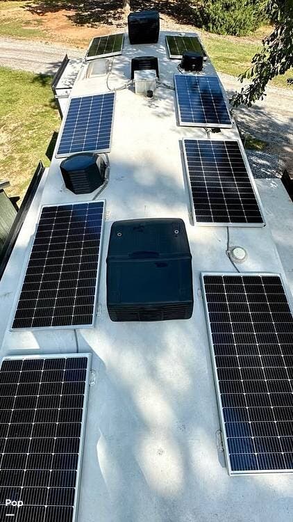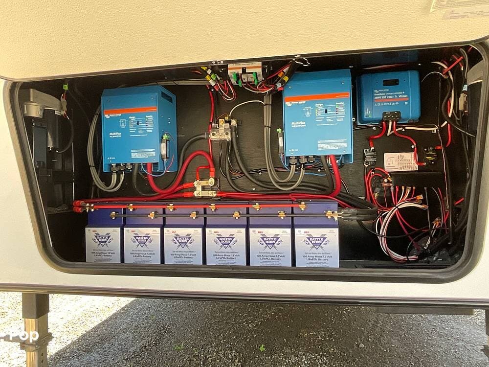 This has eight 200-watt solar panels on top, six Battle Born lithium batteries, and two 3000W inverters. The system has been professionally installed.