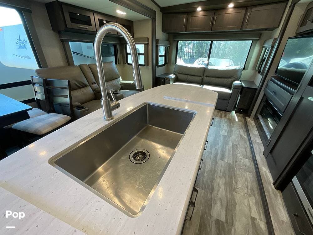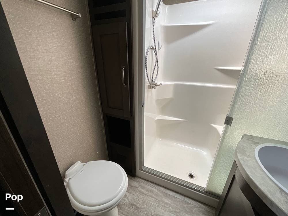Located in Pelzer, South Carolina, this 2022 Reflection 337RLS has been upgraded with enough solar panels and lithium batteries to go off grid comfortably for several days!