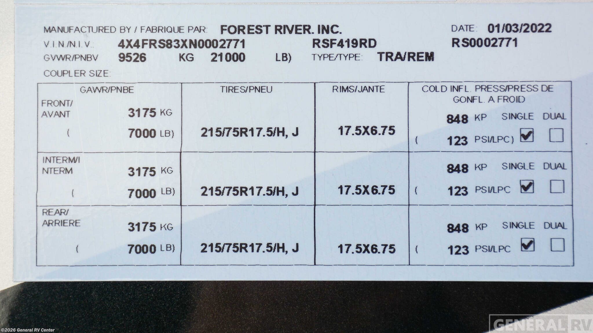 Looking to buy a 2022 Forest River RiverStone Fifth Wheel RV?