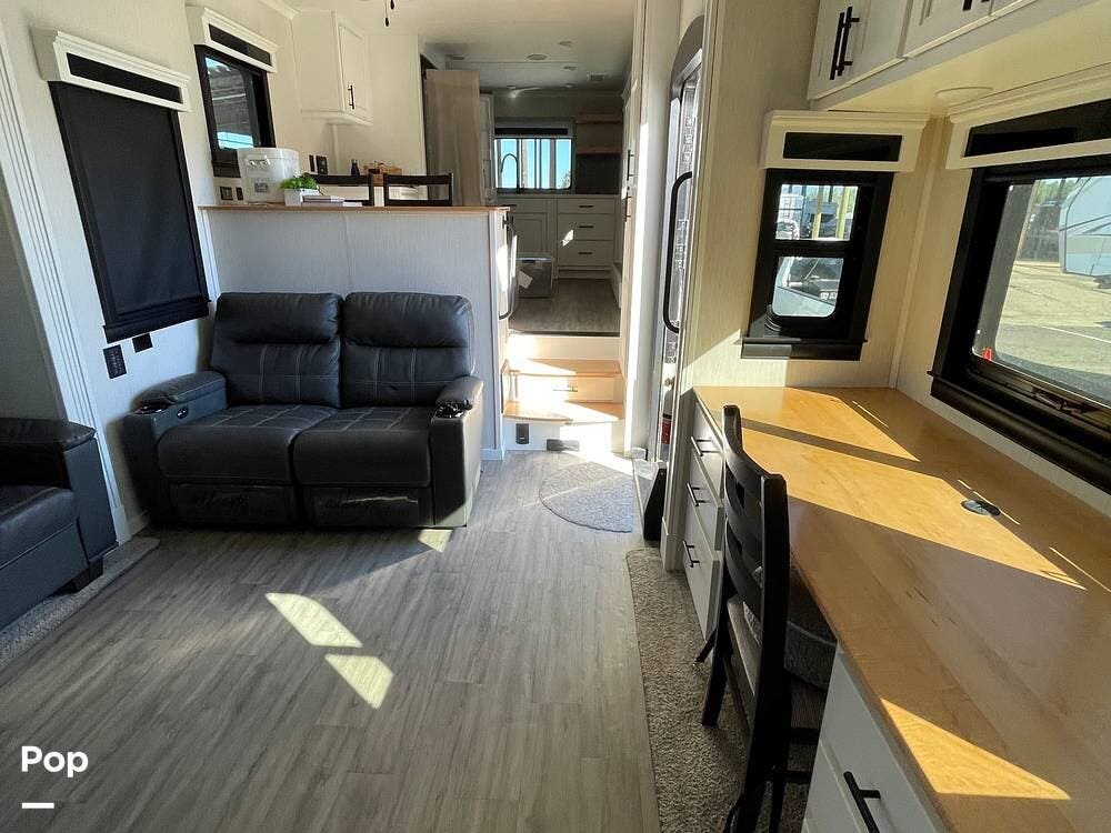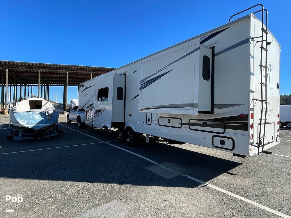 2022 Riverstone Reserve 3950FWK, by Forest River. One owner, Huge Front Kitchen & Rear Bedroom, Sleeps 4, Two awnings, 4 slide-outs, washer and dryer!