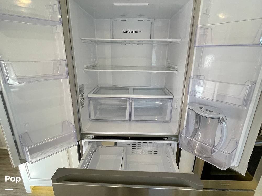 As you enter, you'll notice the expansive kitchen up front, with a large front window, solid-surface countertops, and a French-door 18 cu. ft. refrigerator with ice maker, a four-burner range, stainless microwave, and generous pantry and cabinet space--designed to make meal prep feel very home-like.