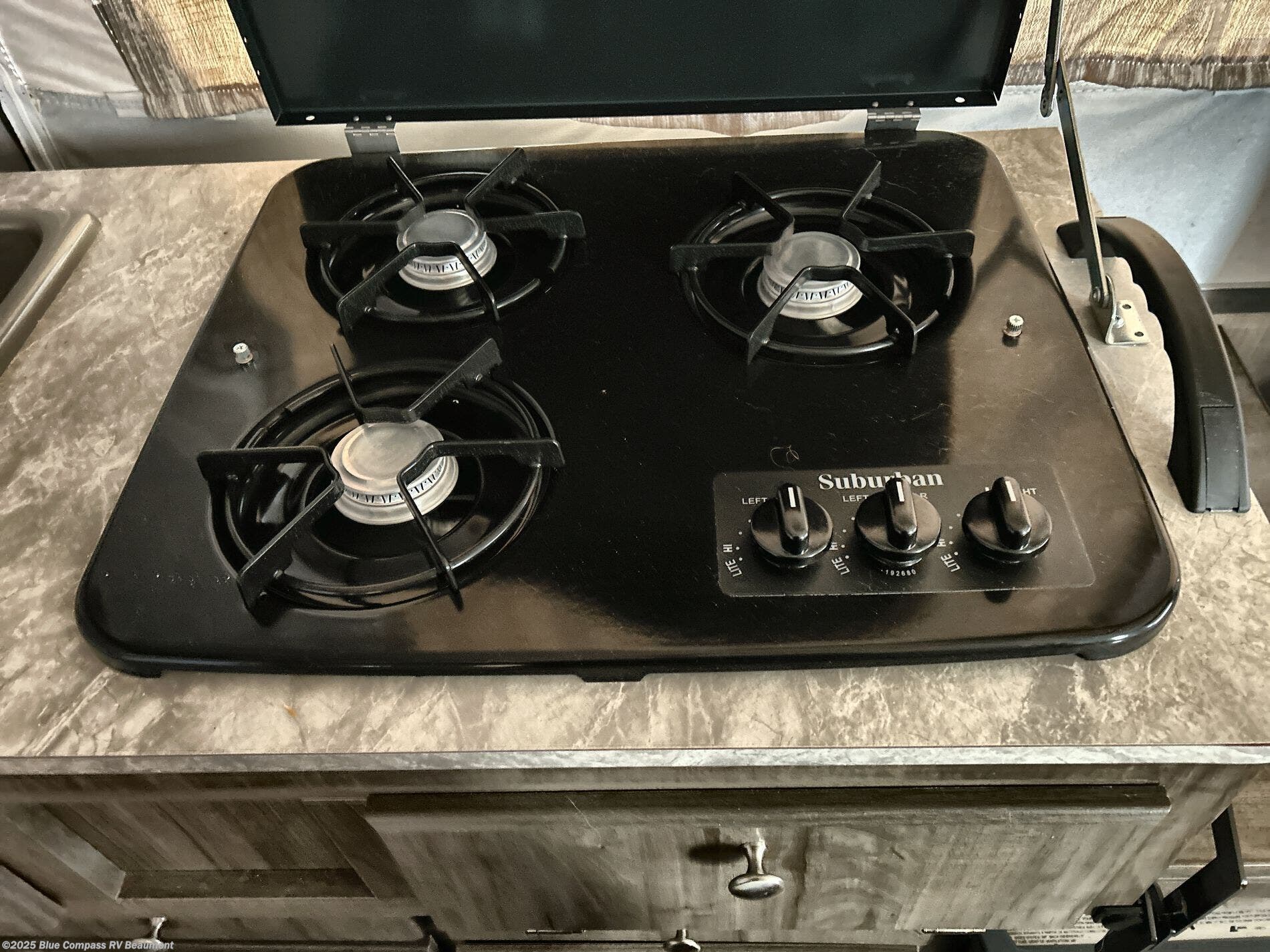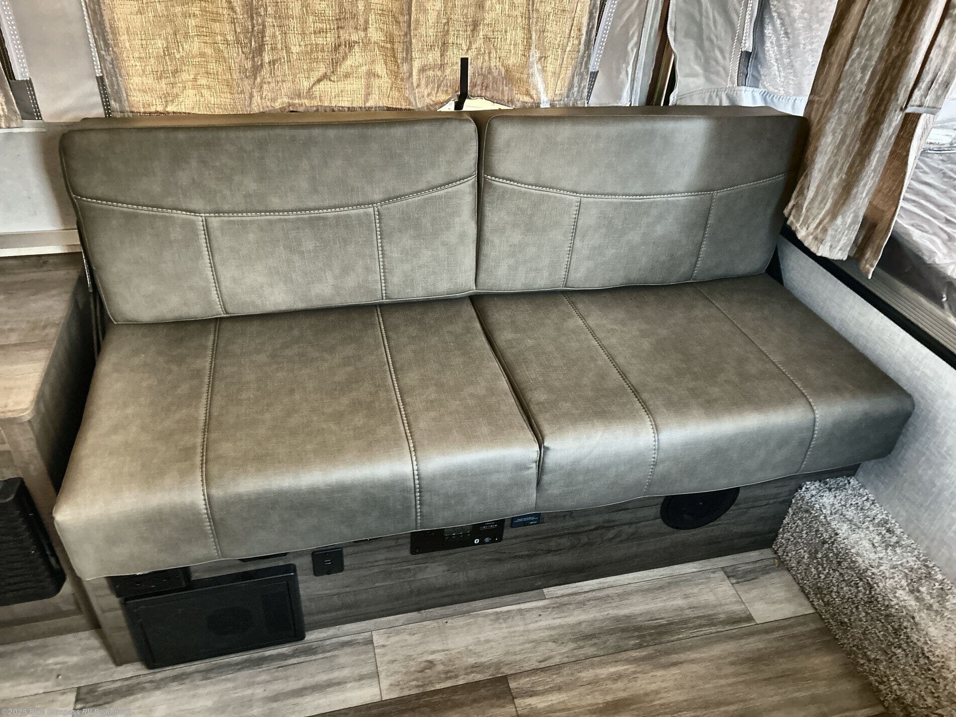 Easy to store, easy to tow and easy to set up is what you will enjoy each and every time you and your family of six head out to the campgrounds! From the two tent end beds allowing four to sleep above ground and indoors to the sofa bed and booth dinette that offer a place to relax inside as well as sleep two more at night, everyone will have their space. The cook will have a swing galley with a range and sink to make meals inside as well as an exterior griddle. The interior also offers residential style cabinet doors, full extension metal drawer guides, plus USB charging ports to keep the electronics ready.