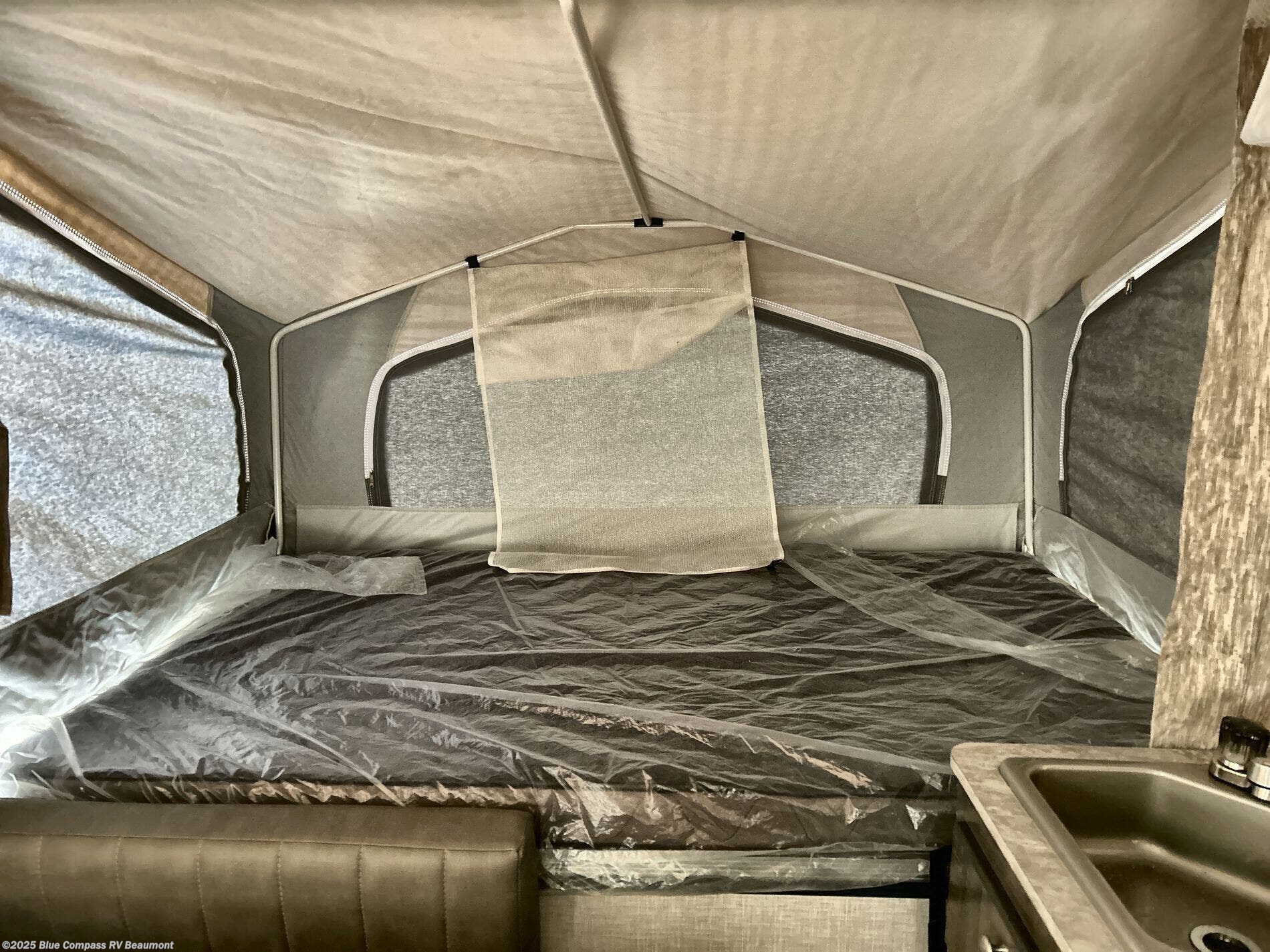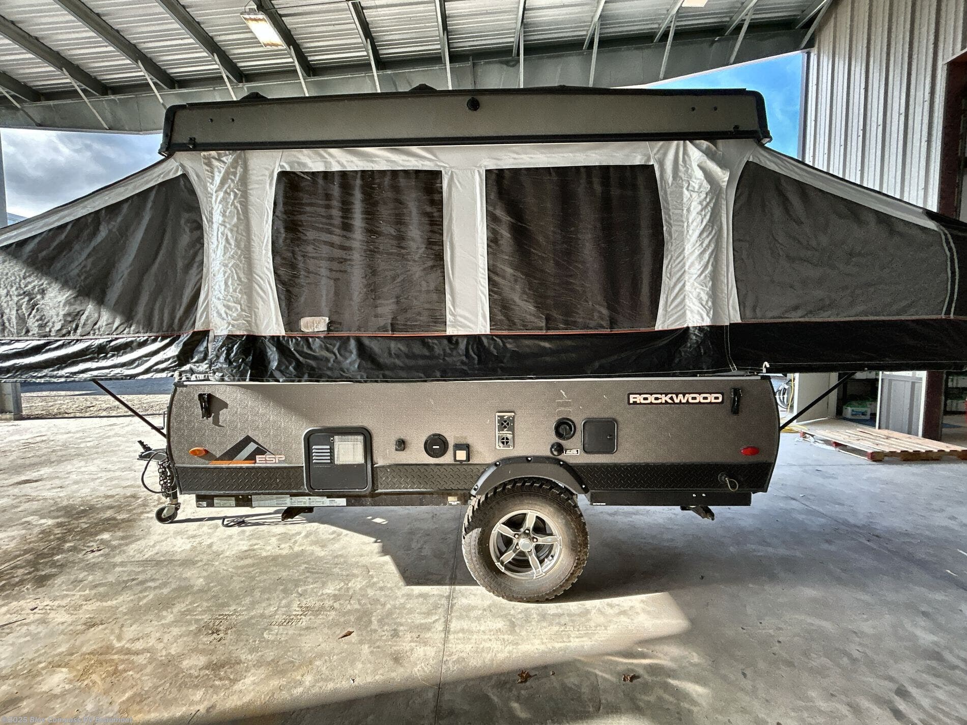 With any Rockwood Extreme Sports Package folding pop-up camper, you will have confidence in the construction from the powder coated tubular steel frame, the three stage double arm lifter post, the fiberglass vacuum bonded radius roof with no center seam, the five-piece Vinolon Supreme tenting, and the full perimeter aluminum bed frames. The ESP Extreme package provides features such as aluminum wheels with 15" Mud Rover tires for better ground-clearance to reach places most RVs wouldn't try, a 100W roof mount solar panel with 1000W inverter, ProRac permanent crossbars, and a power roof lift, plus more. And the interior offers conveniences and comforts while exploring the boundaries. Make your selection today!