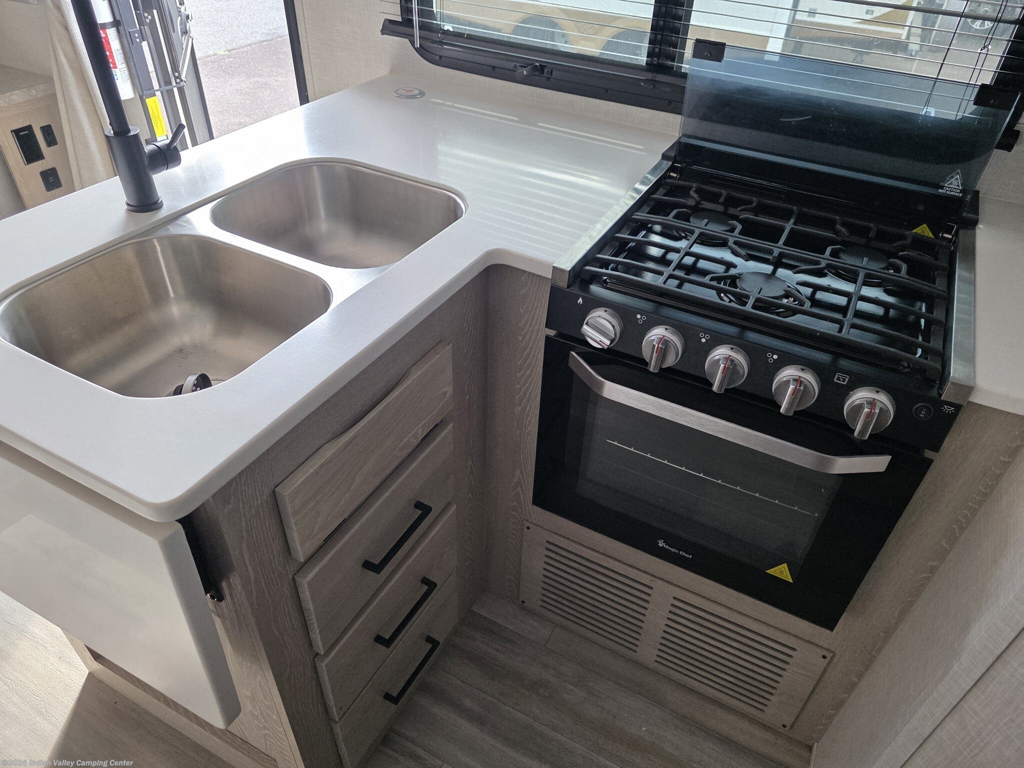 - Exterior amenities such as exterior shower and leveling jacks for easy setup