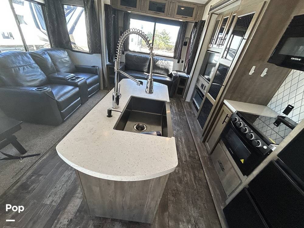 Get ready to set out on the open road in luxury with this beautifully crafted 2022 Forest River Sabre 36BHQ. At 42 feet long, this fifth-wheel RV is designed with families and guests in mind, offering both space and high-end features for unforgettable adventures.