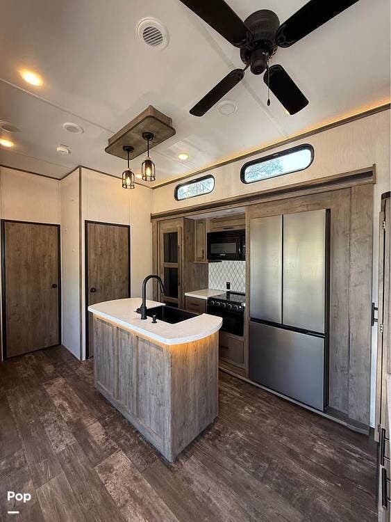 The center of this Sabre is designed for dining and conversation, with the main living area located in the rear. Everyone loves a kitchen island for that extra space, and you have this and everything you need to cook delicious meals.