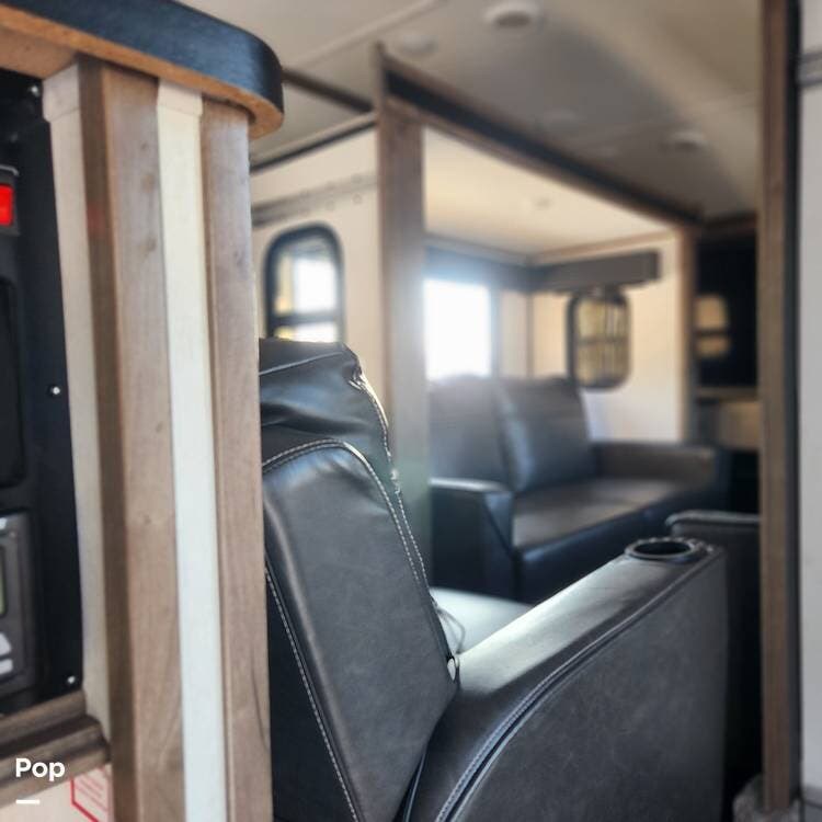 This 2022 Sabre 37FLL fifth wheel has a well-thought-out 4-slide layout. Front Living and Rear Master allow for more privacy. Great Loft area for the kids. (Sleep 3-4)