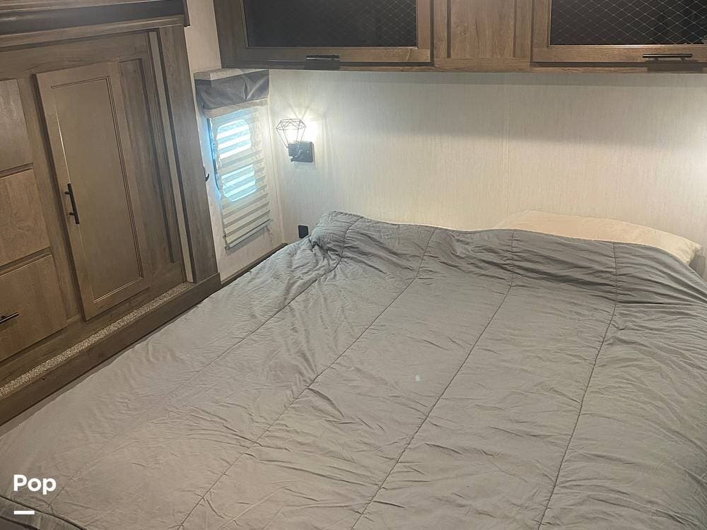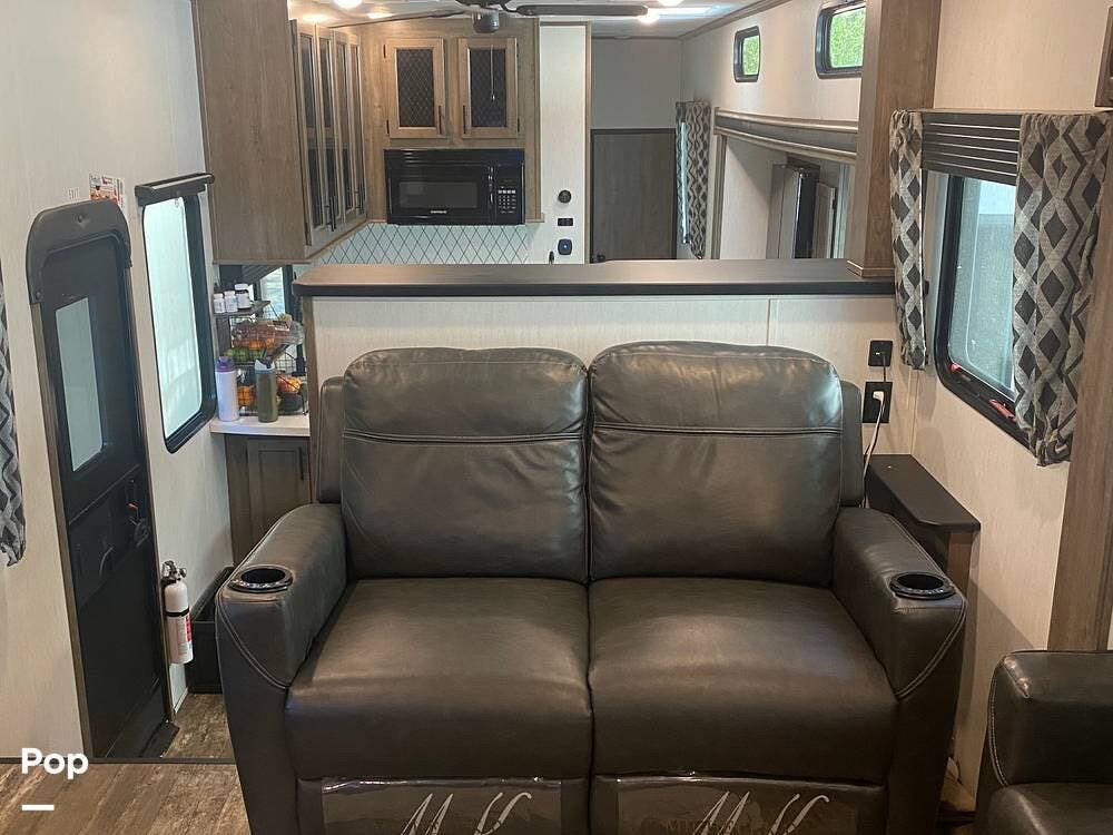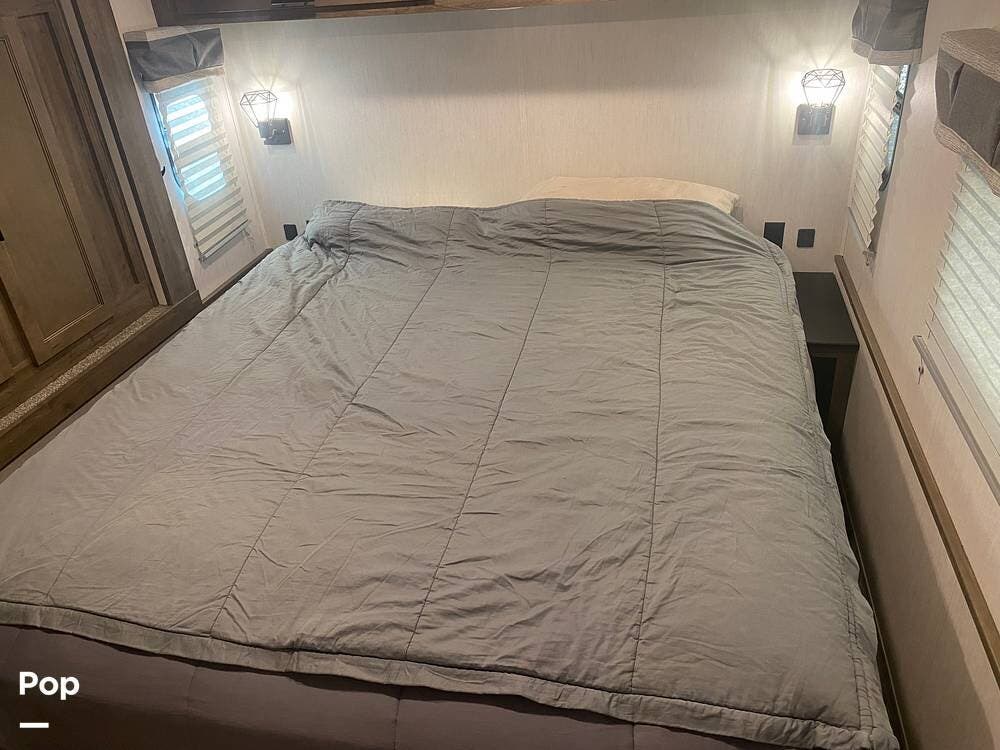 This fifth wheel is built with convenience in mind and offers a comfortable layout for relaxing or entertaining.