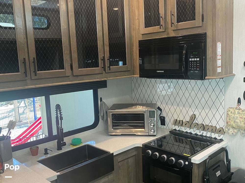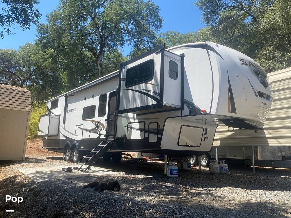 For sale is a single-owner 2022 Sabre 37FLL fifth wheel by Forest River, offering a spacious and functional floorplan designed for extended stays or full-time living.