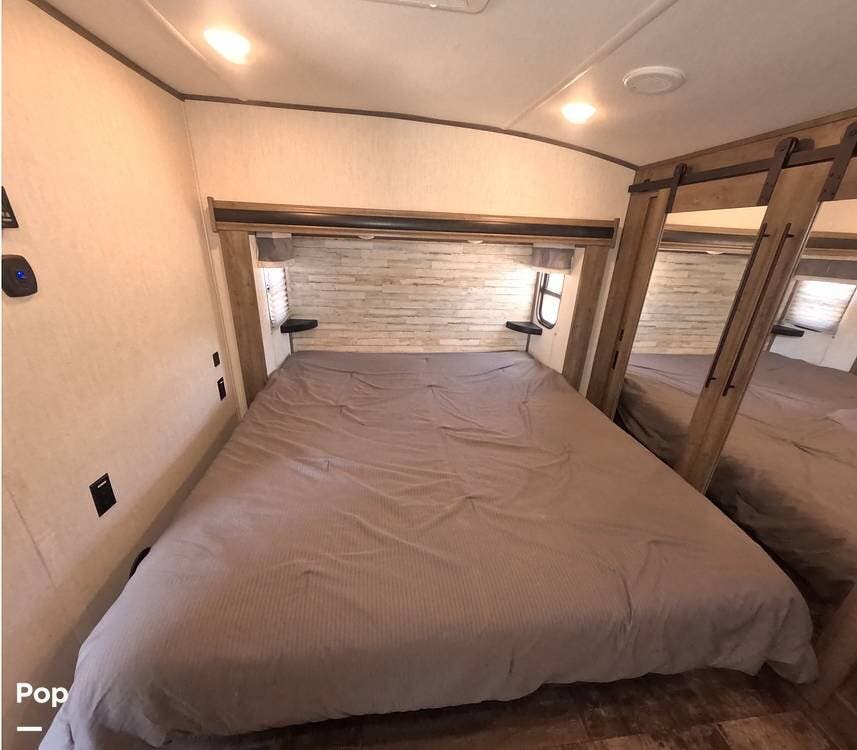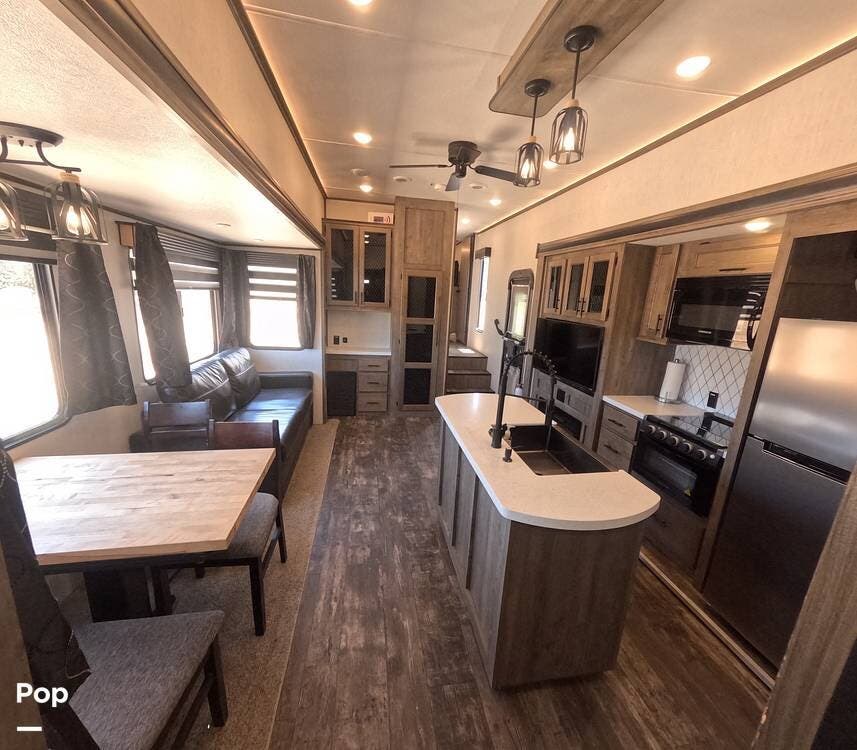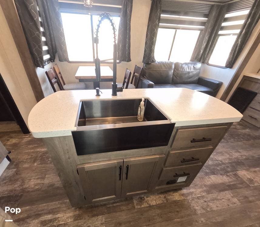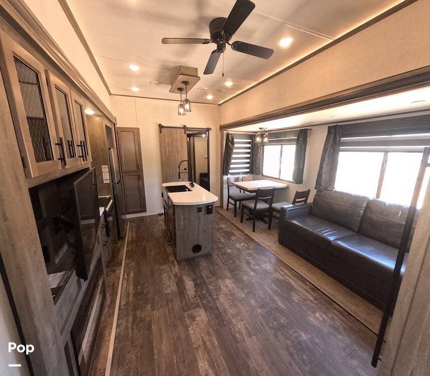 For sale: a meticulously maintained 2022 Sabre 38DBQ Fifth Wheel trailer, designed for comfort, luxury, and extended living on the road.