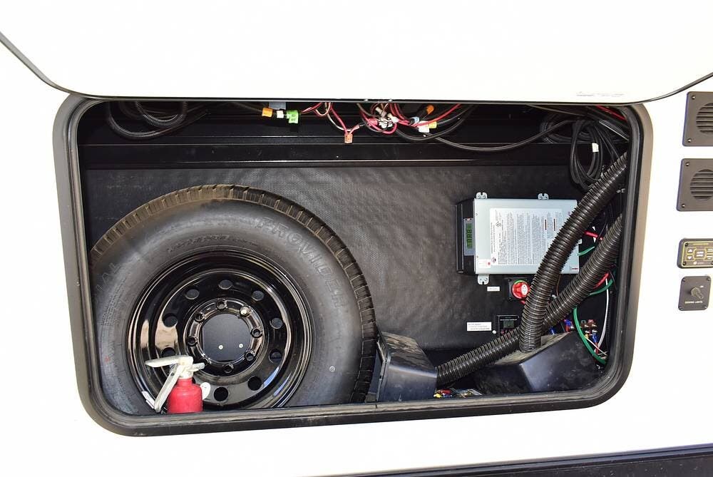 Additional highlights include an outdoor kitchen, a leveling system, solar prep, and upgraded insulation for year-round comfort.