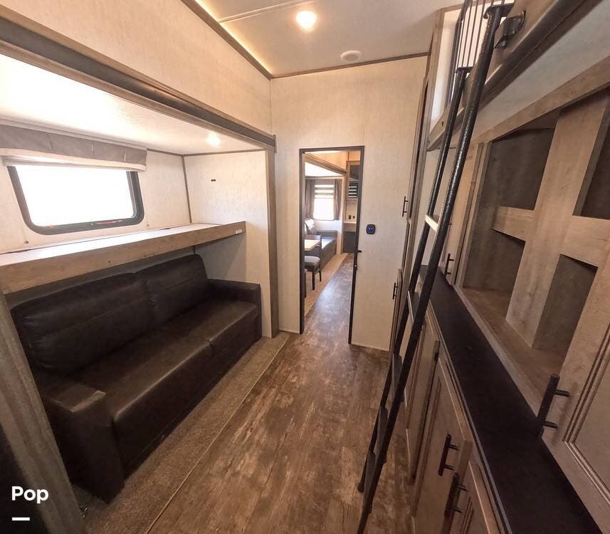 This spacious model features a unique and highly sought-after bunkhouse floor plan with four slide-outs, offering ample room for the whole family or guests.
