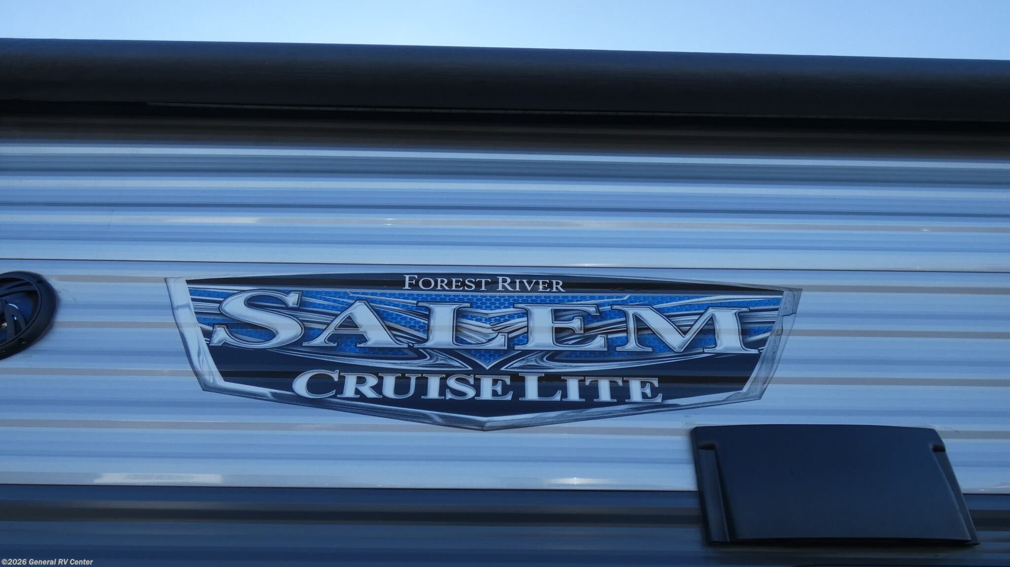 Forest River Salem Cruise Lite travel trailer 263BHXL highlights: Dual Entry Doors Walk-In Pantry Upgraded Furniture Bluetooth Sound Bar Pass-Through Storage If you're looking for a travel trailer that will meet your family's needs then this one is for you! The kiddos will enjoy a good night's rest on the rear corner double bunk beds and you will enjoy a good night's rest on the queen bed inside the front private bedroom. You can also transform the U-shaped dinette and Versa-lounge into extra sleeping spaces. One of the dual entrances leads directly into the rear corner bathroom which has a walk-in shower for you to get squeaky clean each morning. The walk-in pantry is big enough to store your favorite snacks and the oversized 11 cu. ft. refrigerator will keep your beverages nice and cold. There is also an exterior camp kitchen you are sure to love! Each one of these Forest River Salem Cruise Lite travel trailers offer quality and value with a full list of great features! They are built with a fully walkable, one piece SuperFlex roof, a powder coated I-beam frame, a cambered chassis, and has R-7 fiberglass insulation throughout to keep the heat in during the winter and the cool air in from the 13.5k A/C during the summer. The aerodynamic front radius profile makes it easier to tow these units, and the diamond plate rock guard will keep your unit protected while traveling down the road. Some of the new features you will enjoy are the upgraded door pulls, the skylight over the shower, the roof-mounted solar prep, and much more!