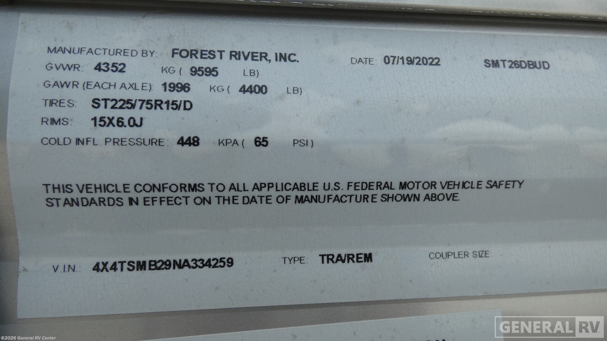 - VIN4X4TSMB29NA334259