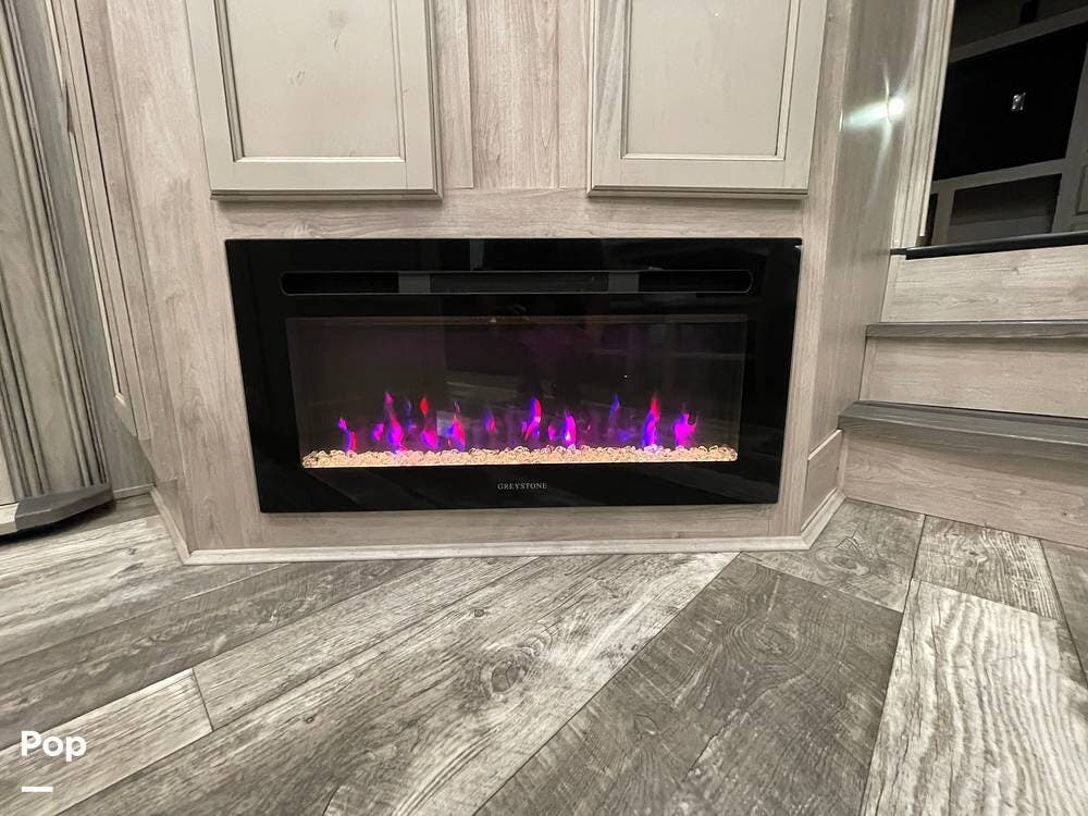 Inside, you'll enjoy the comfort of 1.5 baths, a cozy fireplace, and a full suite of residential appliances, including a large refrigerator, oven, and microwave, giving you all the comforts of home on the road.