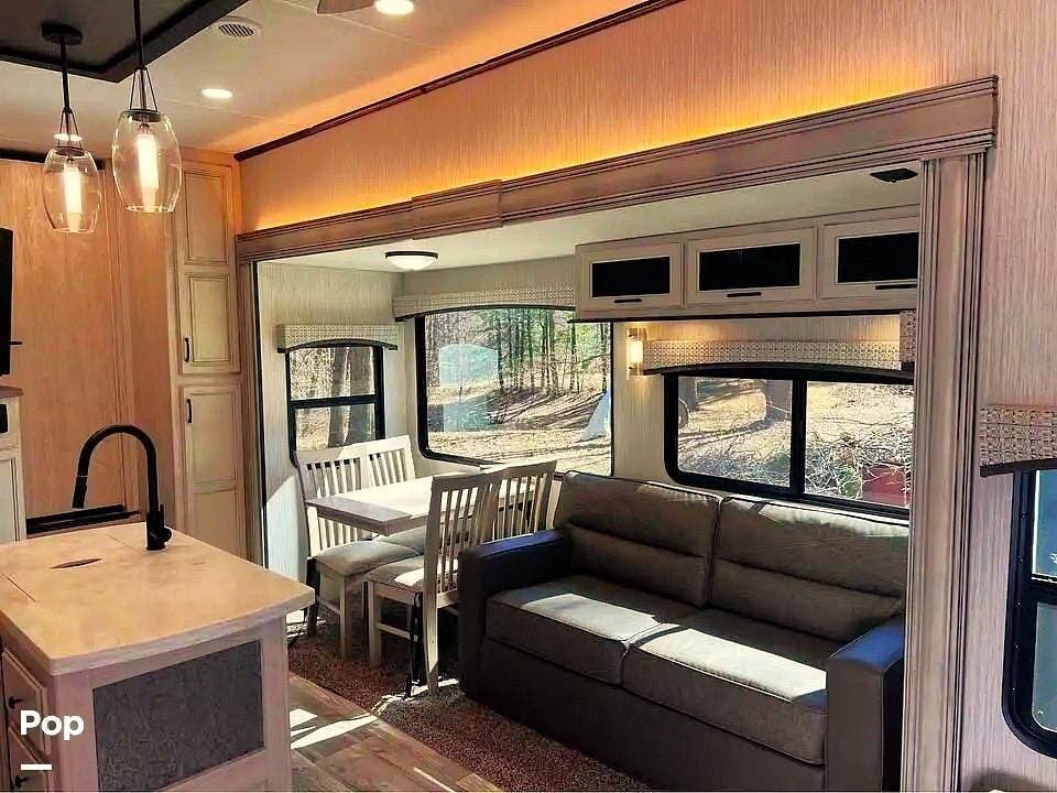 This fifth wheel is built for luxury and family adventures. It features a spacious bunkhouse that's perfect for kids or guests.