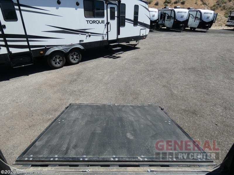 If you and your spouse enjoy hitting the trails, then this Sandstorm toy hauler with a fiberglass exterior is for you! You can easily load and unload your off-road toys with the 3,000 lb. ramp door, and the tie-downs are mounted into steel so that you can be sure your toys will arrive safely. When you're ready to wind down your nights, you can head into the front private bedroom and relax on the queen-size bed or entertain a few guests at the electric pass-through dinette which can also transform into an extra sleeping space.