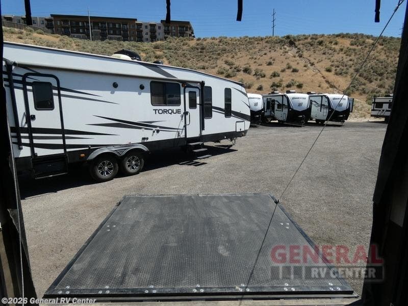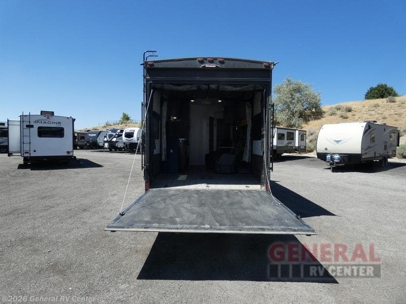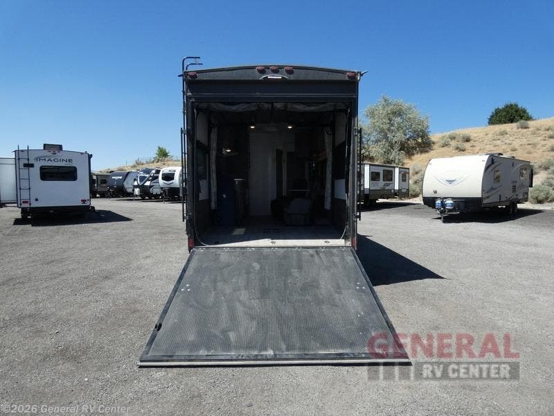 Each Sandstorm toy hauler fifth wheel and travel trailer by Forest River features a 102" wide-body construction to bring along four-wheelers, dirt bikes, or kayaks! You will find convenient amenities, such as 220 watts of solar power and a regulator with power boost, a 35 gallon fuel station, an outside shower to wash off your gear, and more. There is also a power awning with LED lights outdoors to create an outdoor living space, plus heated and enclosed tanks to camp all year long. The interior includes LED accent lighting, black night shades throughout, and a glass shower to name a few comforts.