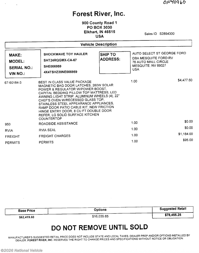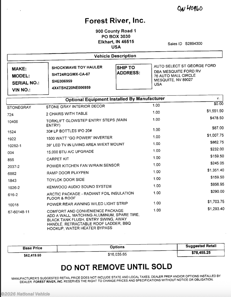 This 2022 Forest River Shockwave MX is located in Mesquite, Nevada. Please call 1-800-320-9557 and mention listing id: 179614.