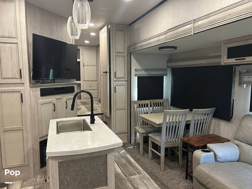 Beautiful 5th wheel in great condition. Enjoy auto leveling, 5 slide outs, 2 big bedrooms 1.5 baths, ample storage, and much more!