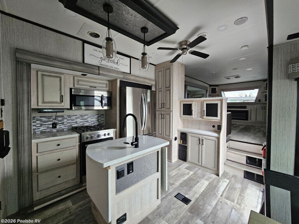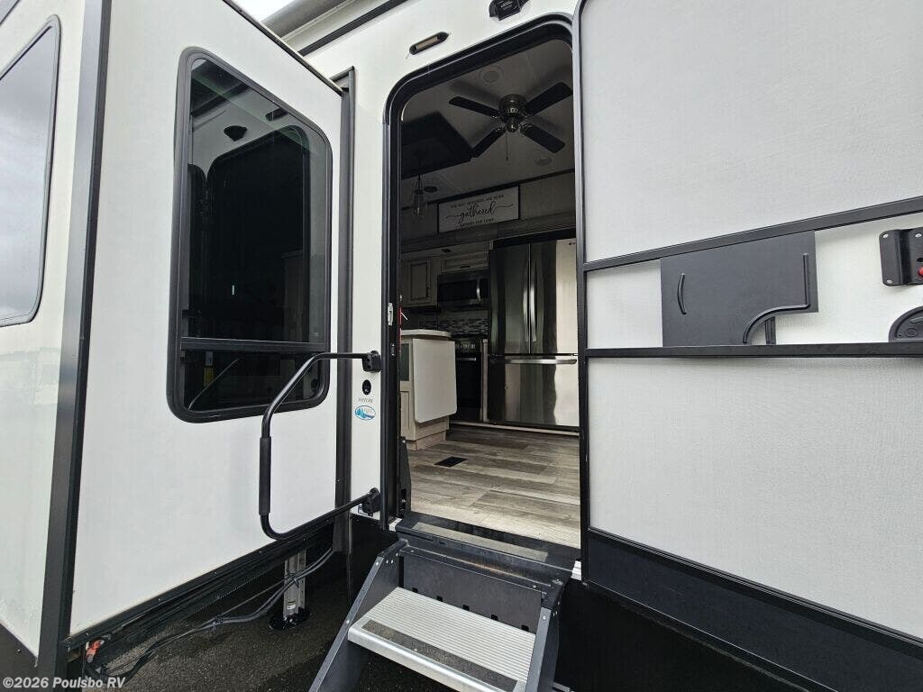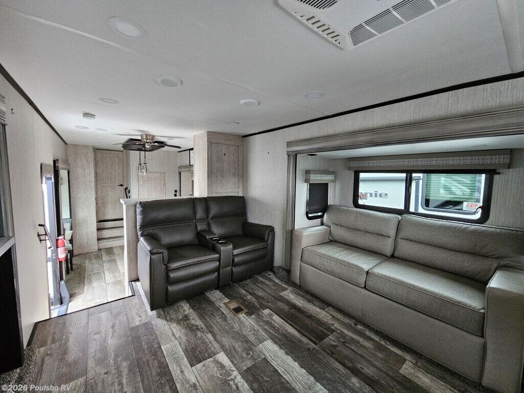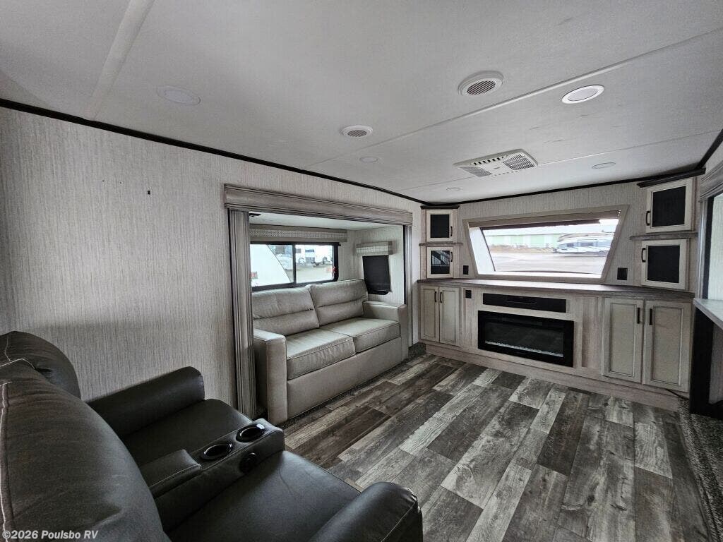 The 2022 Forest River Sierra 391FLRB offers an exceptional combination of spaciousness and comfort built for memorable RV adventures. Measuring 43.6 feet in length, this used model presents ample living space that allows families or groups of up to six to travel in style and convenience. Inside, the layout is designed to maximize comfort with five slide outs that greatly expand the interior, creating a roomy atmosphere perfect for relaxation and entertainment. The living area benefits from thoughtful features including a single awning that provides shade and outdoor comfort. The Sierra 391FLRB is equipped with essential convenience elements, such as leveling jacks, to ensure stability and ease of setup at any campsite. Its substantial GVWR of 16,009 pounds and dry weight of 13,009 pounds allow for solid road performance and durable handling. With a hitch weight of 2,560 pounds, towing is manageable for those prepared for adventure. This model does not include a bunkhouse but compensates with versatile sleeping accommodations suited for six people, making it ideal for family trips or excursions with friends. As a used RV, it represents a great opportunity to own a quality travel trailer from Forest River, a trusted name in the industry. As a family owned, award winning local RV dealer with multiple locations in Sumner, Everett, Kent, and Mt. Vernon Washington, Poulsbo RV here to help you find the perfect RV. Stock#: BC5378, VIN: 4X4FSER26NJ050533