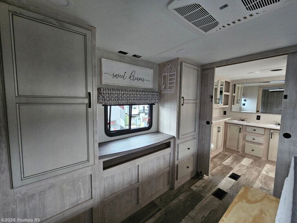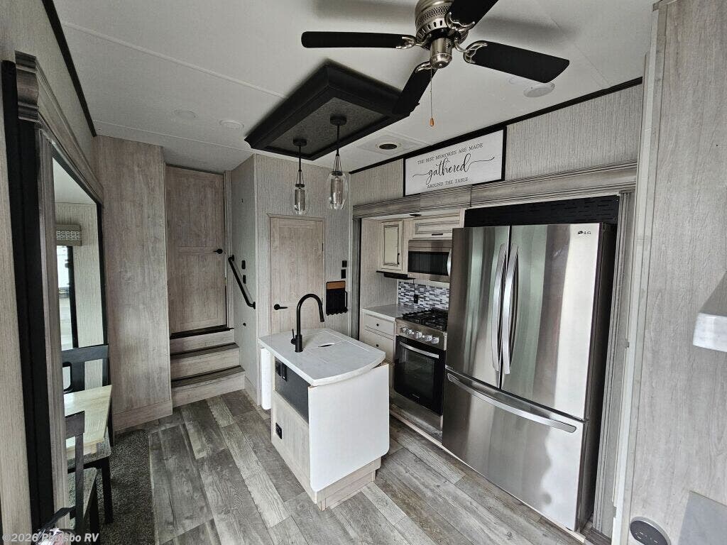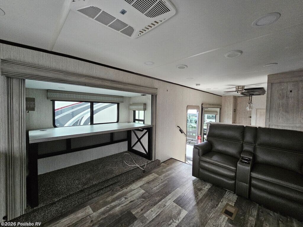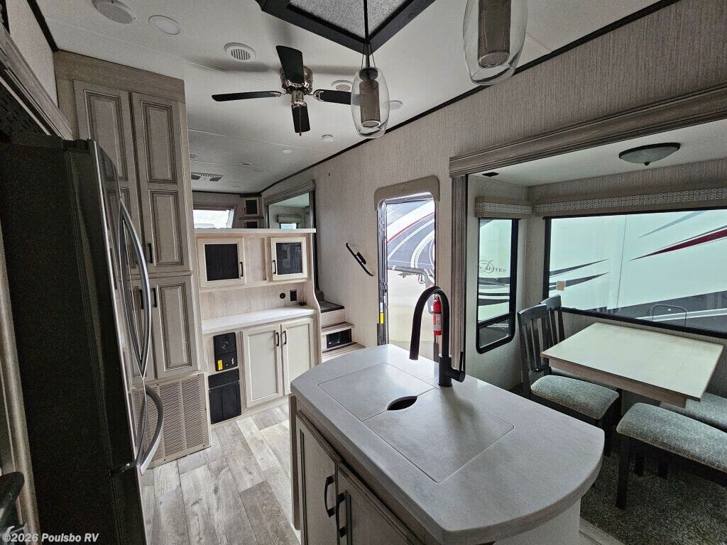 The 2022 Forest River Sierra 391FLRB offers an exceptional combination of spaciousness and comfort built for memorable RV adventures. Measuring 43.6 feet in length, this used model presents ample living space that allows families or groups of up to six to travel in style and convenience. Inside, the layout is designed to maximize comfort with five slide outs that greatly expand the interior, creating a roomy atmosphere perfect for relaxation and entertainment. The living area benefits from thoughtful features including a single awning that provides shade and outdoor comfort. The Sierra 391FLRB is equipped with essential convenience elements, such as leveling jacks, to ensure stability and ease of setup at any campsite. Its substantial GVWR of 16,009 pounds and dry weight of 13,009 pounds allow for solid road performance and durable handling. With a hitch weight of 2,560 pounds, towing is manageable for those prepared for adventure. This model does not include a bunkhouse but compensates with versatile sleeping accommodations suited for six people, making it ideal for family trips or excursions with friends. As a used RV, it represents a great opportunity to own a quality travel trailer from Forest River, a trusted name in the industry. As a family owned, award winning local RV dealer with multiple locations in Sumner, Everett, Kent, and Mt. Vernon Washington, Poulsbo RV here to help you find the perfect RV. Stock#: BC5378, VIN: 4X4FSER26NJ050533