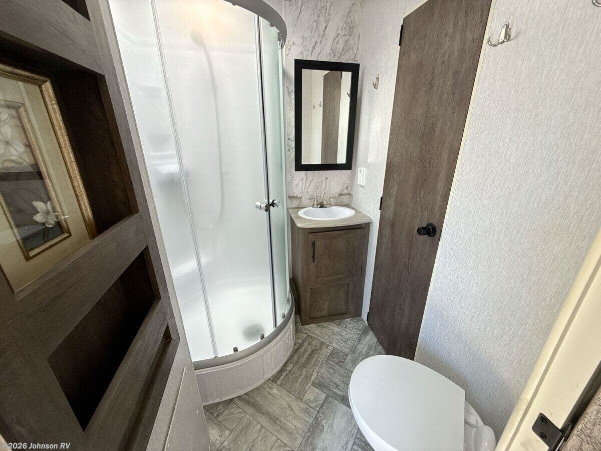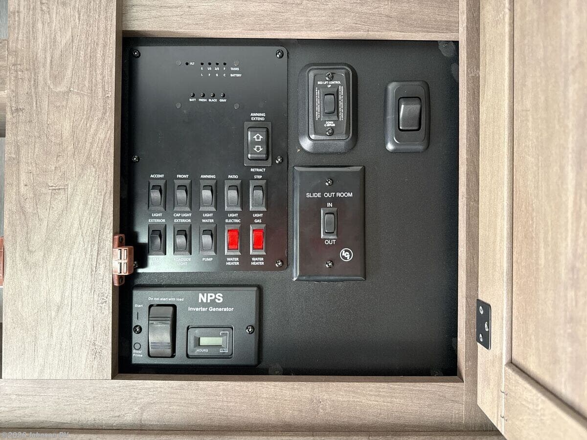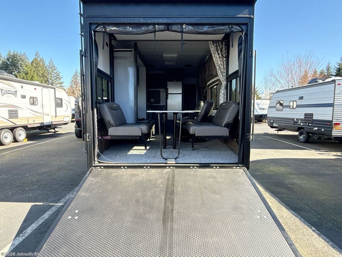 Features Include: Ramp Door Bar Light, Beaver Tail Floor, Add-A-Wall, 35-Gal Fuel Station, Electric Lift Bed, Porch Light, LED Accent Lights, Black Night Shades, Backsplash, Refrigerator (vbm), 22-inch Chef's Oven, Microwave Oven, USB Charge Ports, WiFi Prep, Queen Bed 60x80, King Bed 72x80, Glass Shower, Skylight, 220w Solar Power, 30k Ducted Furnace, Water Heater Bypass, Sewer Hose Carrier, Power Tongue Jack, Aluminum Wheels, Matching Spare Tire, TG Plywood Decking, Front Gravel Guard, Seamless PVC Roofing