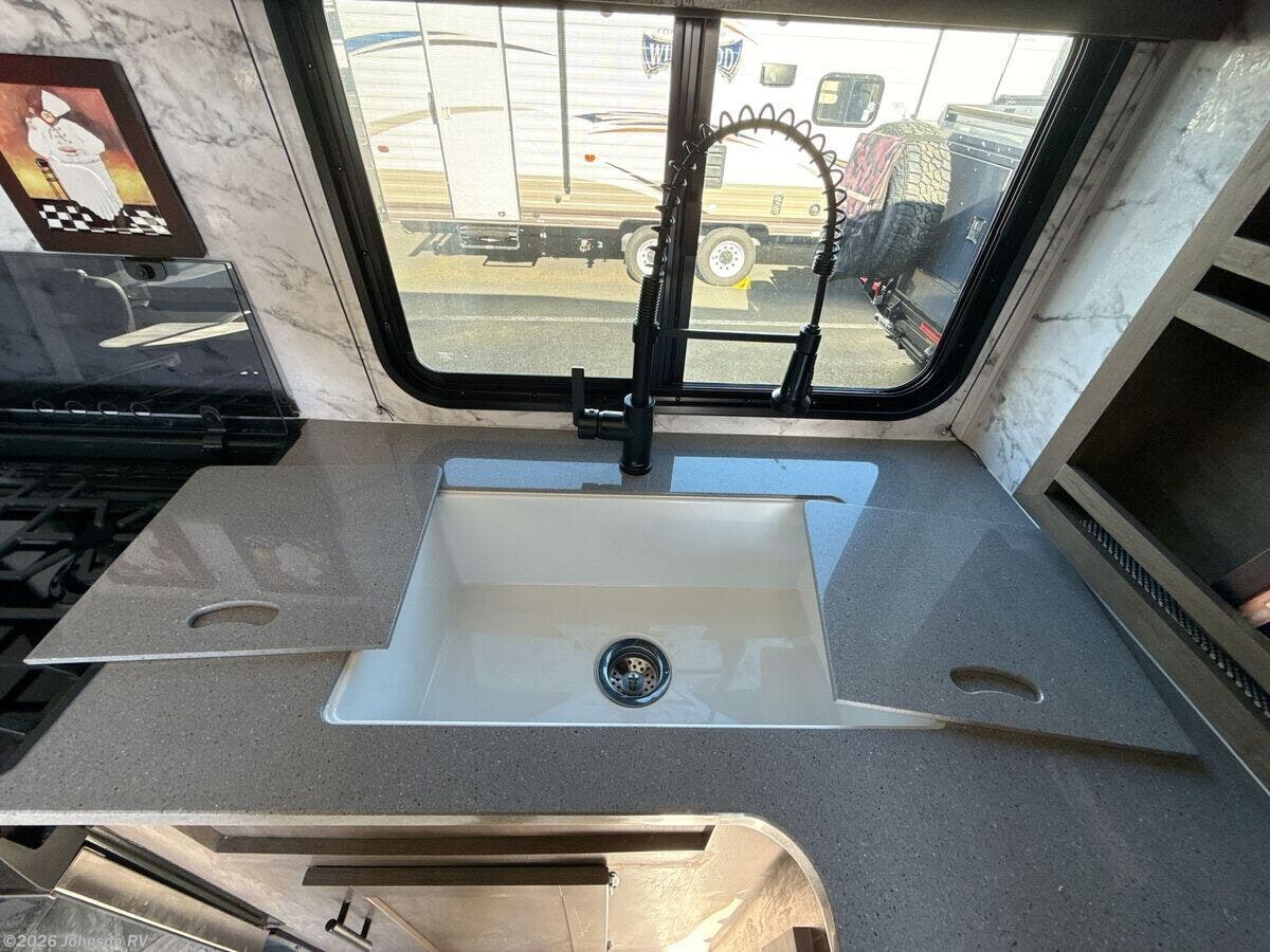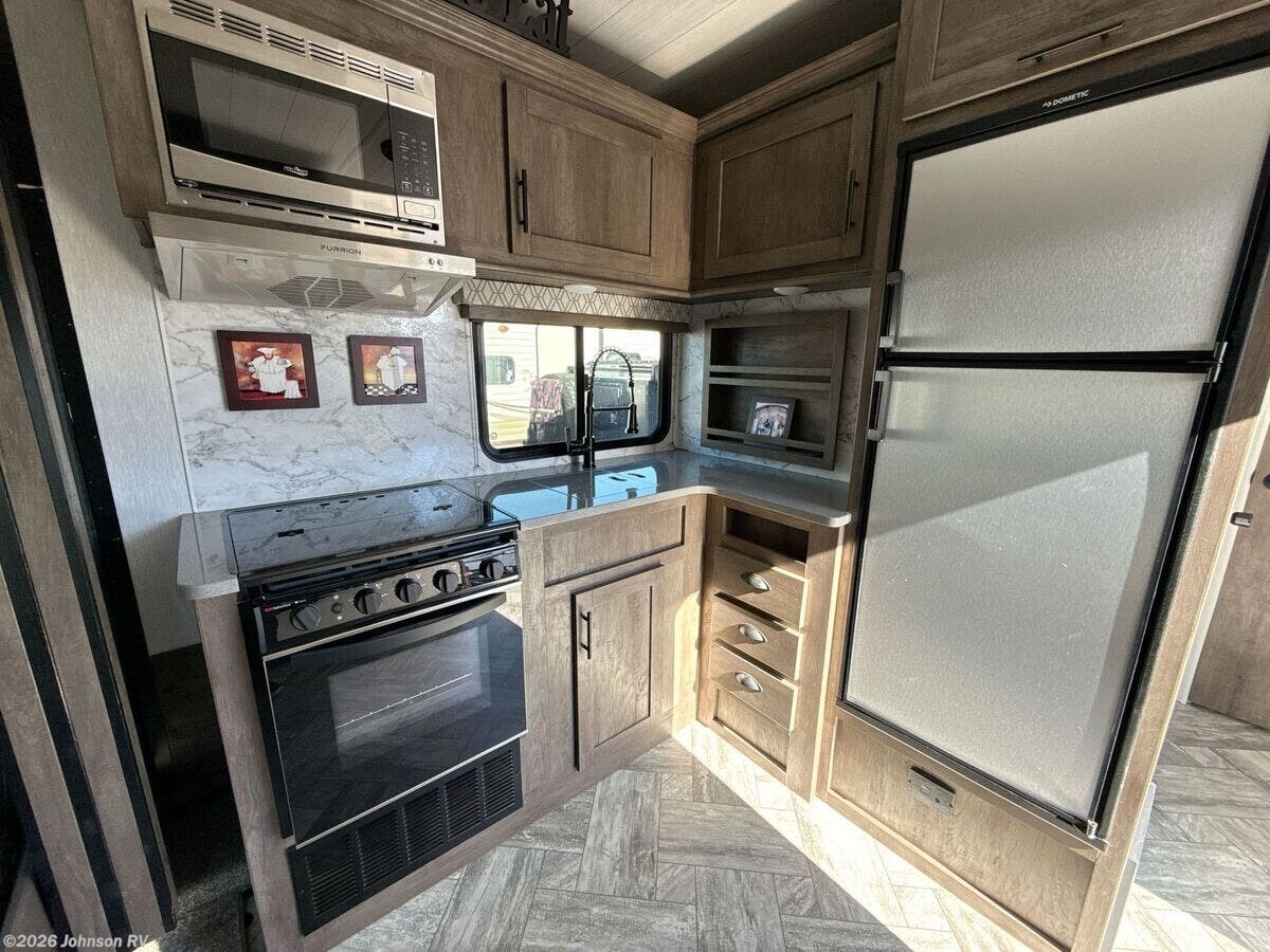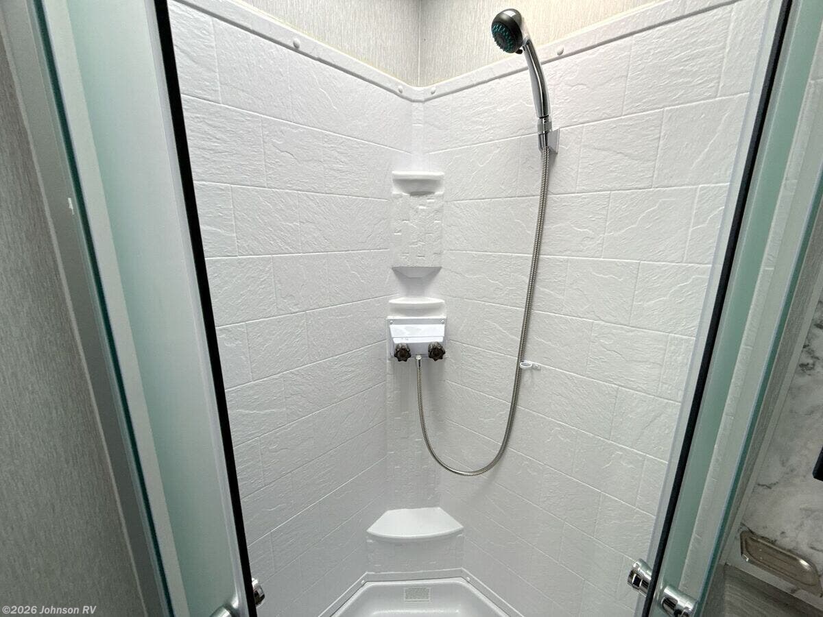 Features Include: Ramp Door Bar Light, Beaver Tail Floor, Add-A-Wall, 35-Gal Fuel Station, Electric Lift Bed, Porch Light, LED Accent Lights, Black Night Shades, Backsplash, Refrigerator (vbm), 22-inch Chef's Oven, Microwave Oven, USB Charge Ports, WiFi Prep, Queen Bed 60x80, King Bed 72x80, Glass Shower, Skylight, 220w Solar Power, 30k Ducted Furnace, Water Heater Bypass, Sewer Hose Carrier, Power Tongue Jack, Aluminum Wheels, Matching Spare Tire, TG Plywood Decking, Front Gravel Guard, Seamless PVC Roofing
