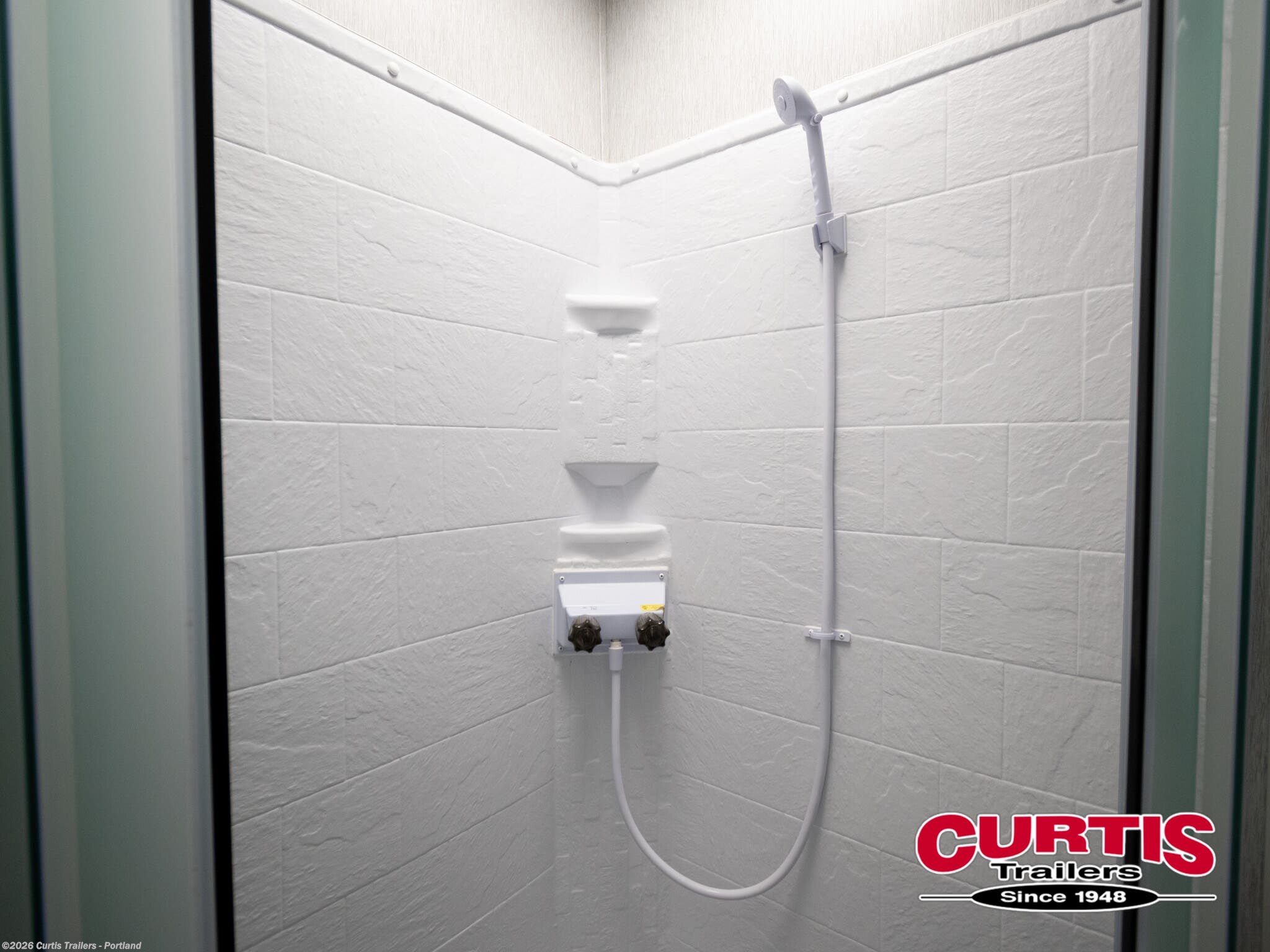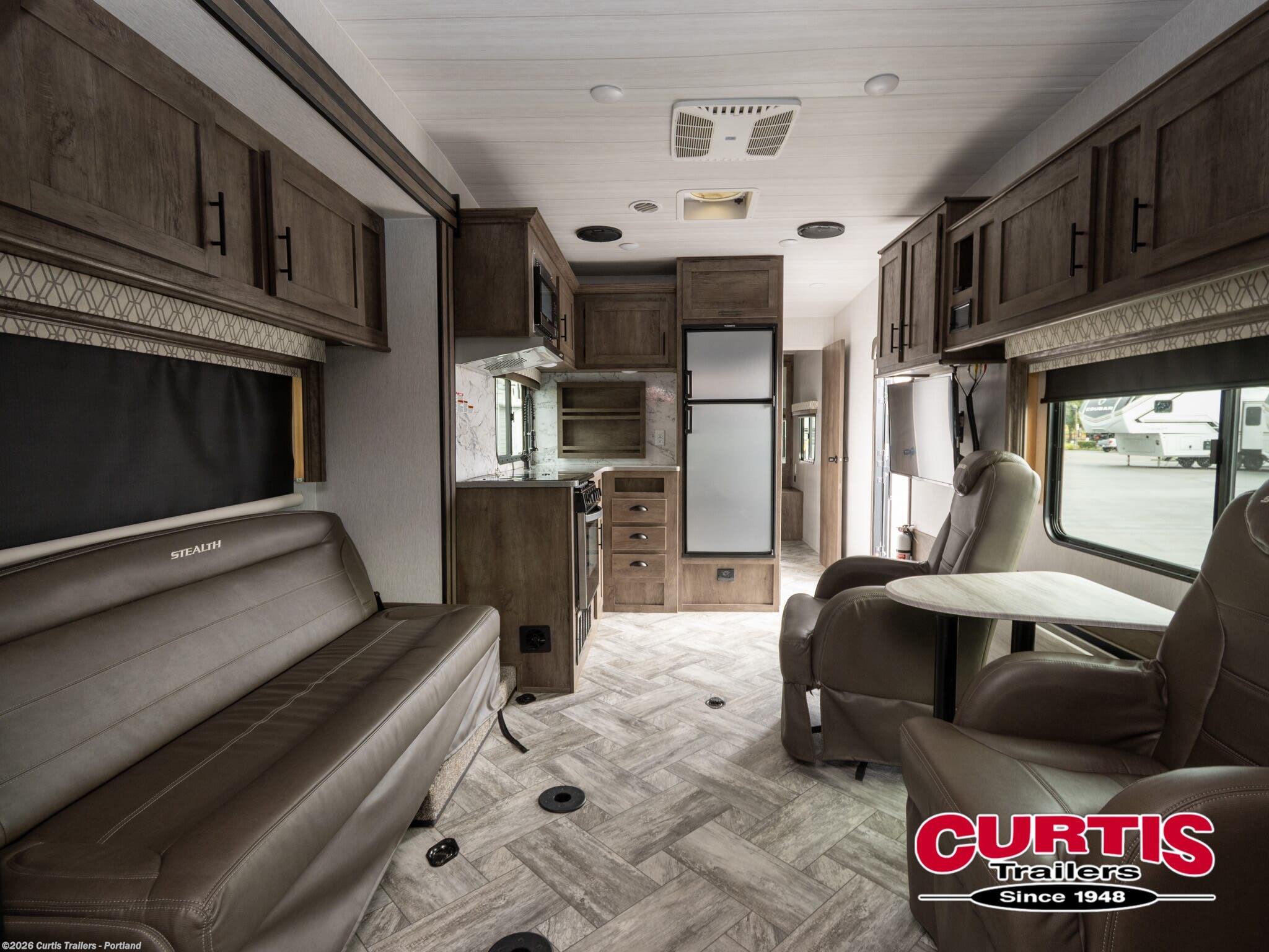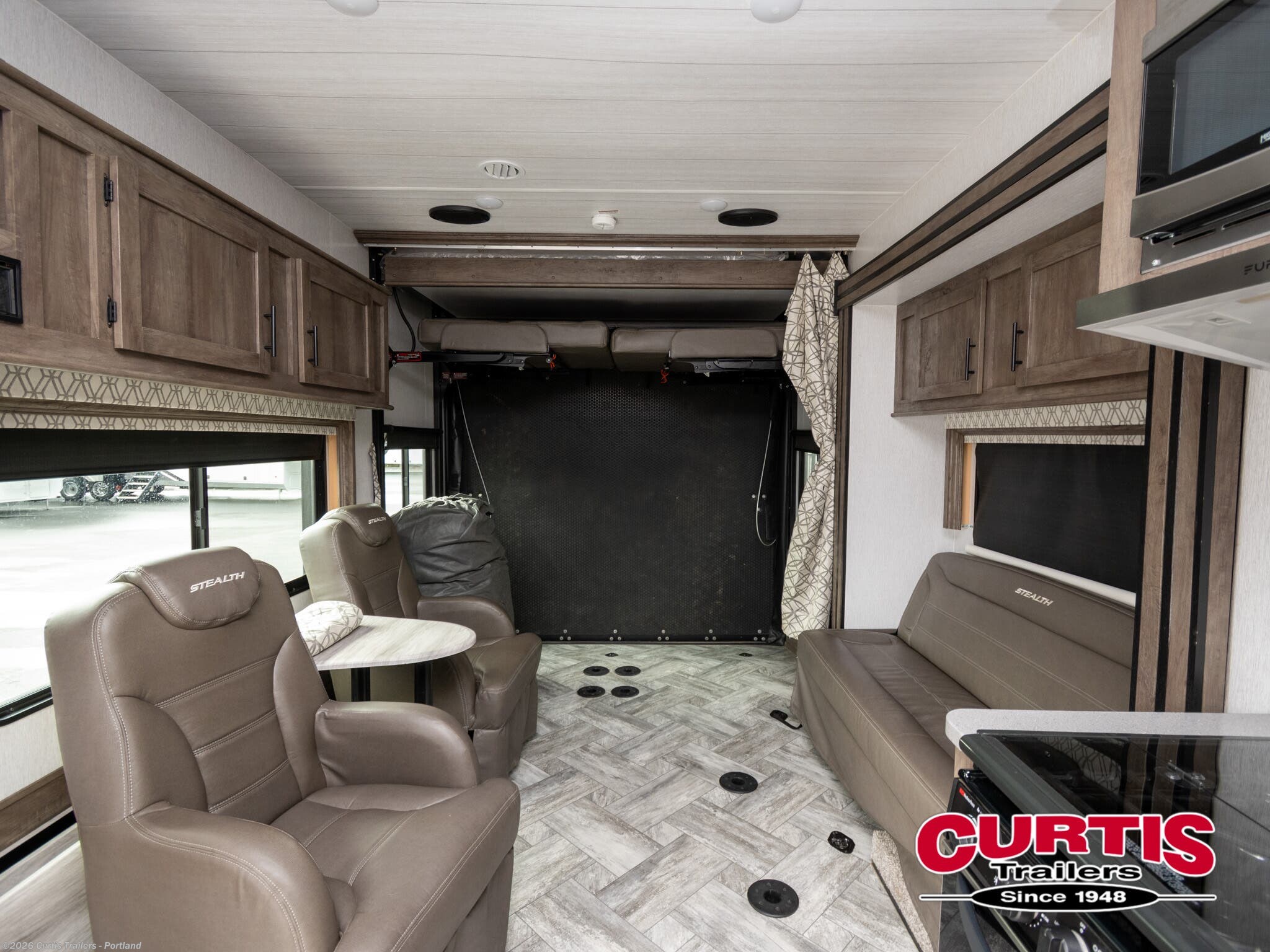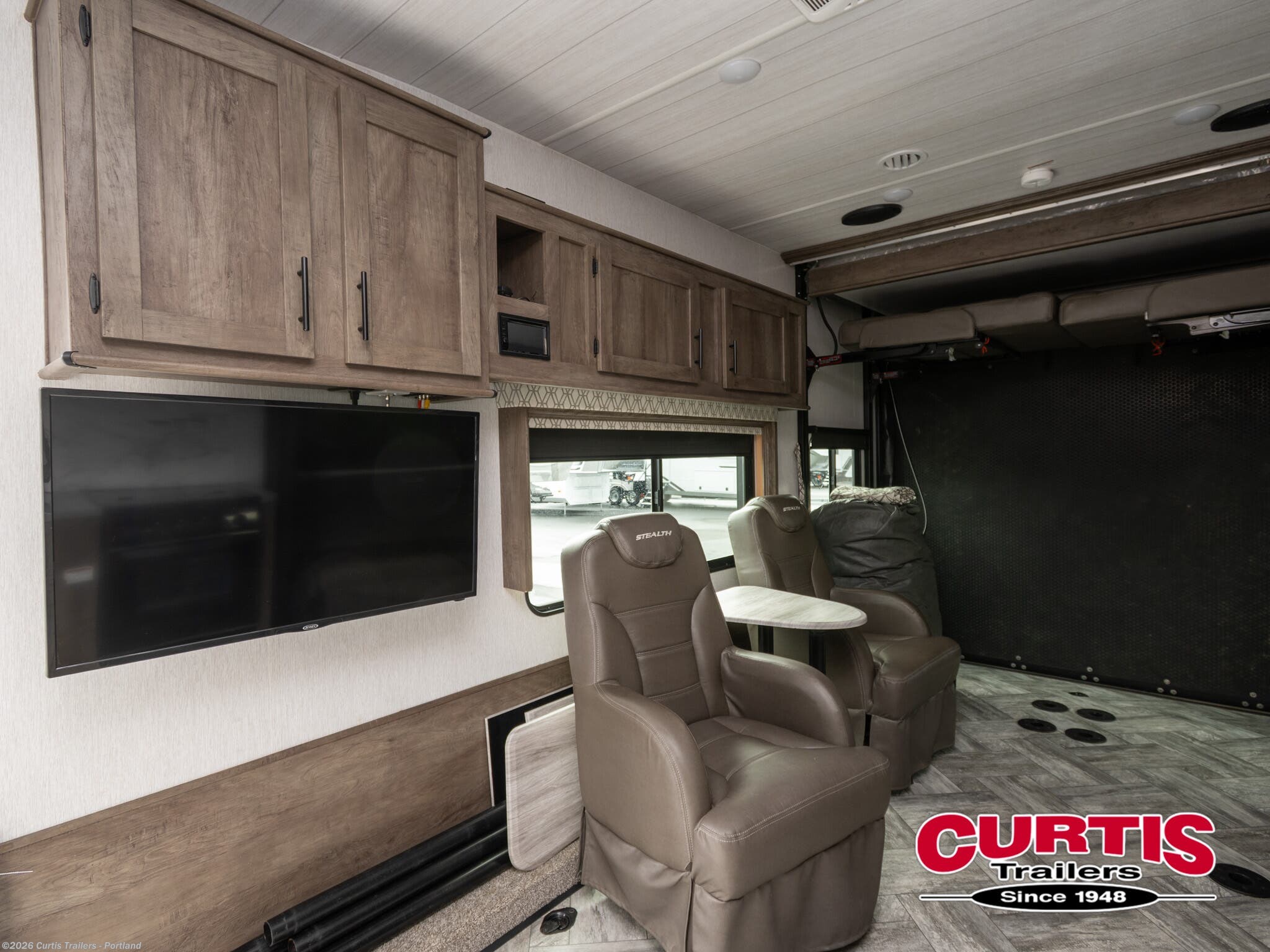Don t pass up your chance to camp with your favorite off-road toys in this toy hauler! You will feel right at home sleeping on the queen bed in the front private bedroom, and the entrance into the dual entry bathroom will come in very handy at night. The electric pass-through dinette is not only great for enjoying a meal or playing a game, but also for transforming into an extra sleeping space in addition to the electric bed above it! Each one of these Forest River Stealth toy haulers are built with a solid foundation and a 102 wide body construction! The 35 gallon fuel tank will keep your toys filled and ready to hit the trails, plus the black 1,200 lb. tie downs mounted to steel will keep them safe as you travel. These units are filled with luxury from the stainless steel appearance appliances to the pillow top mattress and USB charging ports throughout. The heated and enclosed underbelly and the one-piece seamless PVC roof will protect your unit through all weather conditions. There is also an outside shower with hot and cold water to keep the dirt outside where it belongs. Come find your favorite model today!