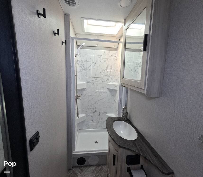Designed for travelers who crave freedom and comfort, this motorhome features dual slide-outs for expanded living space, a private rear bedroom with a walk-around queen bed, and a full bath with shower, vanity, and skylight.
