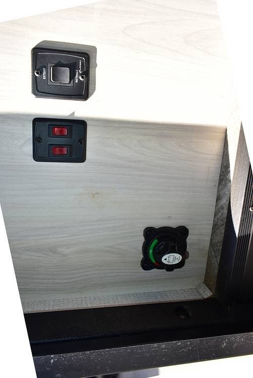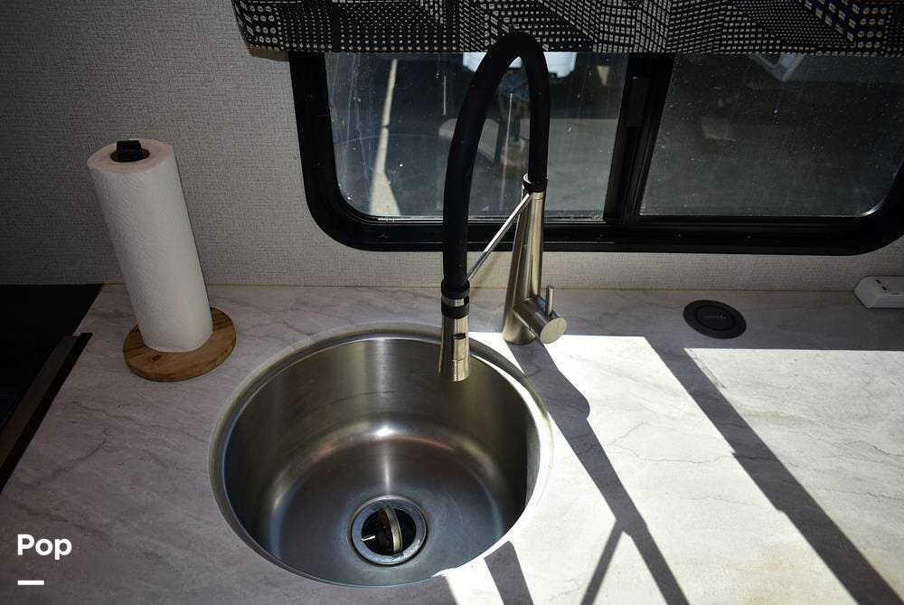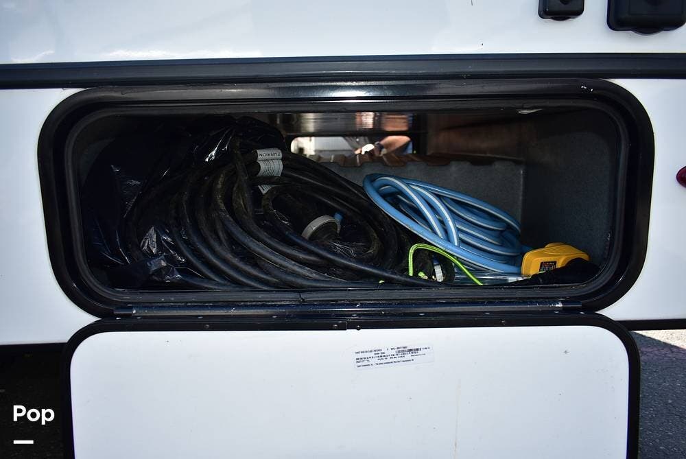 Outside, unwind under the power patio awning with integrated LED lighting, and take advantage of multiple exterior storage compartments, an outside shower, and 7500lb towing hitch for extra gear.