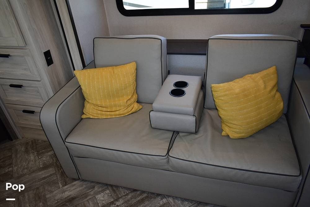 Inside, enjoy a roomy dinette and sofa for relaxing evenings, plus an overhead bunk for guests or added storage.