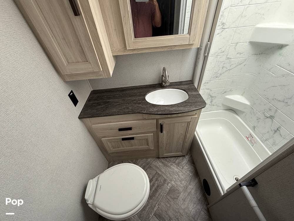 The full bathroom includes a large shower and plenty of space to refresh and recharge.