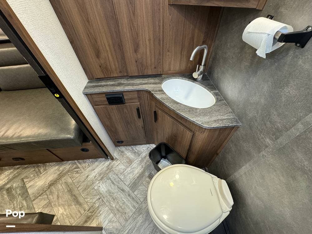 With its innovative design, this RV offers versatile sleeping arrangements with power twin beds that effortlessly convert into a queen, ensuring a comfortable rest after a day of exploration.