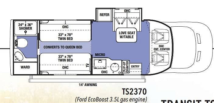 This 2022 Sunseeker TS2370 AWD, built on the reliable Ford Transit Chassis, is powered by a robust Ford EcoBoost 3.5L V6 gas engine featuring Port Fuel Direct Injection (PFDI) technology delivering 275 horsepower for seamless travels.