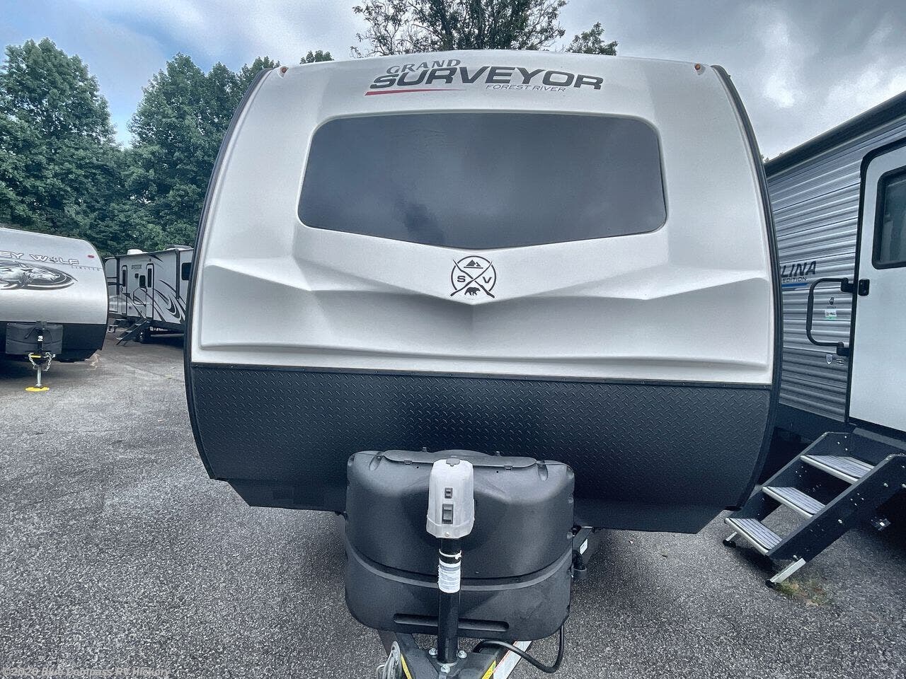 With any Grand Surveyor travel trailer by Forest River, you will enjoy 82" of headroom inside, a porcelain toilet, and USB ports to keep your electronics charged. Each trailer is constructed with laminated aluminum framed sidewalls, rear walls and slide out walls, laminated aluminum perimeter flooring and studs, and aluminum framing in all openings for windows, doors, and appliances. Each unit also includes Azdel composite walls, a PVC roof membrane, and Lippert axles with leaf spring suspension. The Extended Camping feature within the mandatory Artisan Package provides a 15K high performance A/C with concealed heat ducts in the wall/cabinets (sub-4's ductless) with radiant heat and heat duct to the underbelly allowing you to be comfortable in any weather no matter where you are camped. Never stop exploring, come choose your very own Grand Surveyor today!