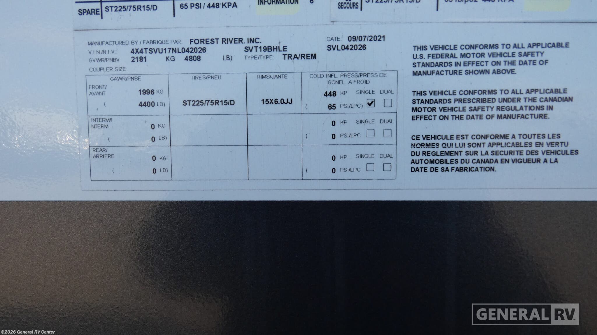 2022 Forest River Surveyor Legend 19BHLE Specifications