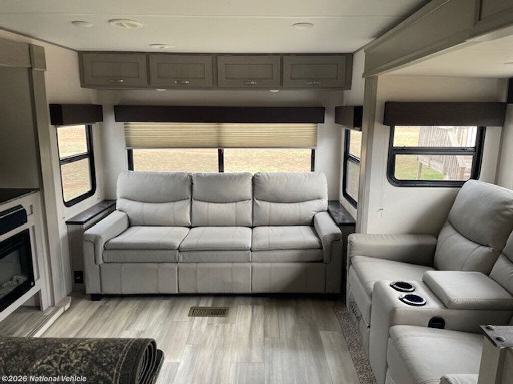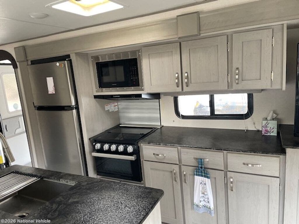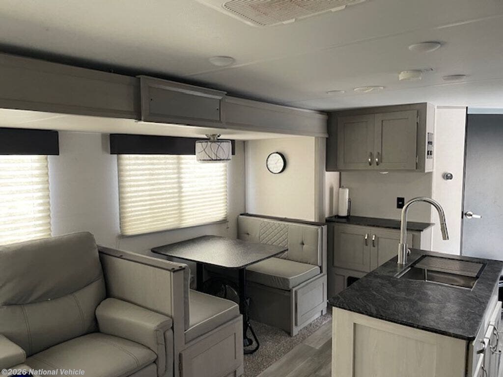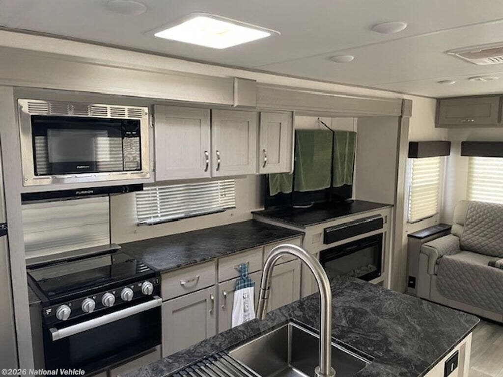 Step inside to a spacious and inviting interior where thoughtful design meets practical comfort. The living area features comfortable seating, abundant natural light, and a slide-out that expands your space - creating the perfect place to relax, entertain, or enjoy your favorite shows. The well-appointed kitchen is ready for meal prep with quality appliances, generous counter space, and plenty of storage for all your culinary essentials.