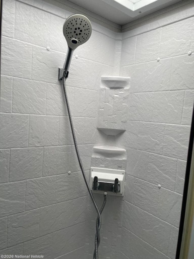 Retreat to the private master bedroom with a cozy bed and ample wardrobe space, while additional sleeping areas ensure family and guests travel in comfort. A full bathroom with a residential-style shower and practical layout adds everyday convenience to life on the road.