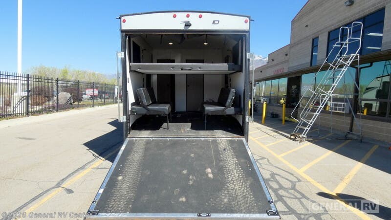 **Forest River Vengeance Rogue toy hauler 32V highlights:** - Counter Peninsula - Bath and a Half - King Bed - Outside Storage - Three Sofas The 12' 6" separate garage in this toy hauler means you don't have to worry about gas and oil in your main living quarters. You can sleep four in the garage with the two roll-over sofas and the quick set queen bed system, plus there is a half bath here for convenience. Head to the main living area where you'll find dual opposing slides for added space, a large pantry to store snacks galore, and a sofa with a table where you can enjoy your coffee at each morning. The full bath has its own private entrance into the front bedroom where you'll enjoy the Rogue king bed and dual wardrobes to keep your clothes wrinkle-free! The Vengeance Rogue by Forest River is a budget-friendly toy hauler that you can really get on board with! Some of the features within the Rogue Platinum Package are the zebra shades that will keep light out, a glass shower enclosure, ultracold heated holding tank pads, and much more. There is an outside shower with hot and cold water so you can fill the dogs water bowl or wash the mud from your riding gear, and the enclosed underbelly will allow you to extend your camping season. You will love the look of the residential black stainless steel farm sink, along with seamless countertops and LED interior lighting with accents.