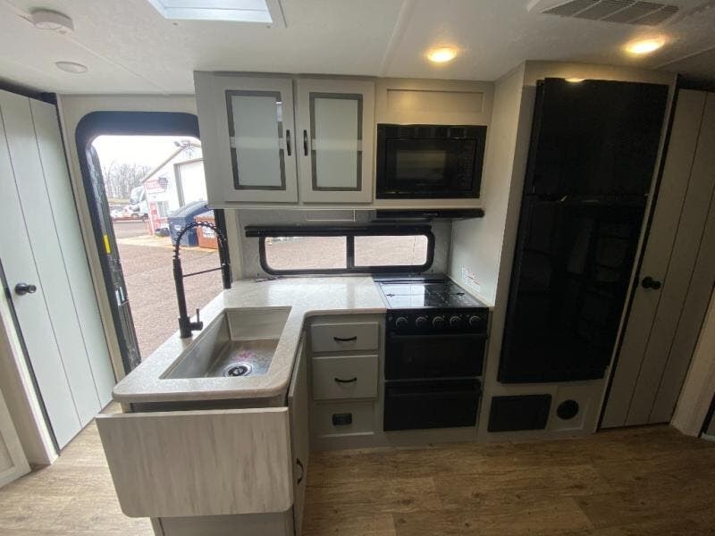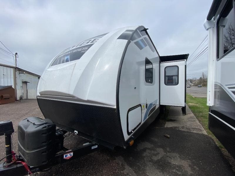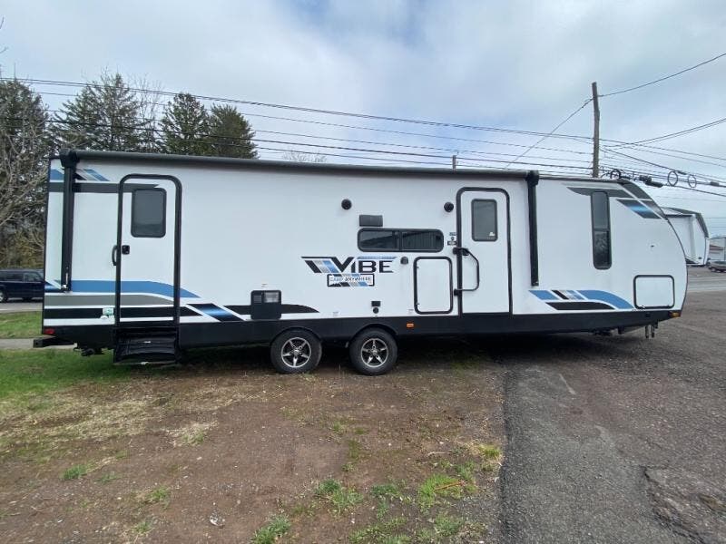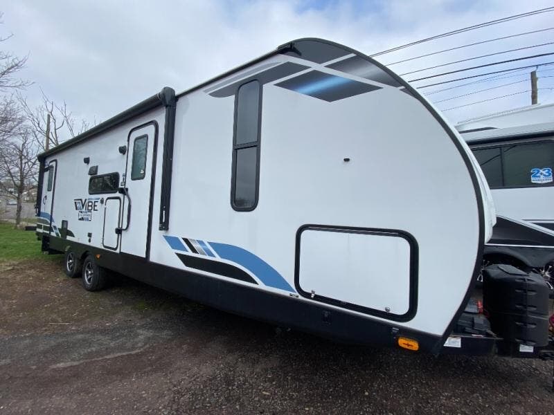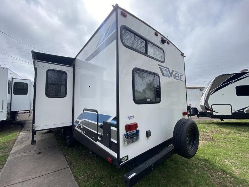 Each Vibe travel trailer by Forest River includes Hyper Lyte construction and a durable laminated "Aluma Frame" for years of use. The heated and enclosed underbelly allows you to extend your camping season, and the LED-lit exterior speakers will keep the party going as you grill outdoors and visit with family. Inside, you'll find LED lights to keep everything bright and open, a Bluetooth stereo, roller shades for your privacy, and many more amenities per region. These models also include cable and satellite prep and a digital TV antenna with a booster so you can stay connected to the outside world if you choose. Make the easy choice and choose a Vibe travel trailer today!